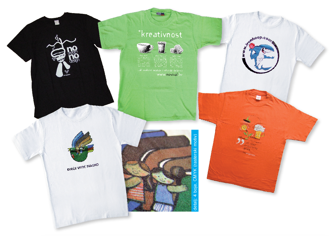 Osim prodaje majica, nudimo i dotisak na istu, čime majica kao artikl dobiva sasvim drugo značenje. Nakon dugogodišnjeg iskustva u tisku na majice možemo s ponosom reći da smo spremni na svaki tiskarski izazov. Najčešće koristimo tehniku SITOTISKA zbog trajnosti i kvalitete otiska. U mogućnosti smo otisnuti željeni motiv od jedne boje do punog kolora, na jedan ili više položaja na majici. Osim sitotiska za mušku nakladu koristimo i DIREKTNI TISAK .