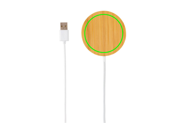 Snap on this magnetic wireless charger to the back of your iPhone 12 to charge your device. The magnets are perfectly aligned to always ensure the right charging position on your phone. The bamboo 10W wireless charger is compatible with all QI devices (Iphone 8 and up and Android devices), so on other phones it can be used as a regular wireless charger. Including 100 cm TPE material micro USB cable. Item and accessories PVC free. Input DC 5V/1.5A; Output 5V/2.0A (10W) 11 pcs high quality N52H heat resistant magnets integrated.