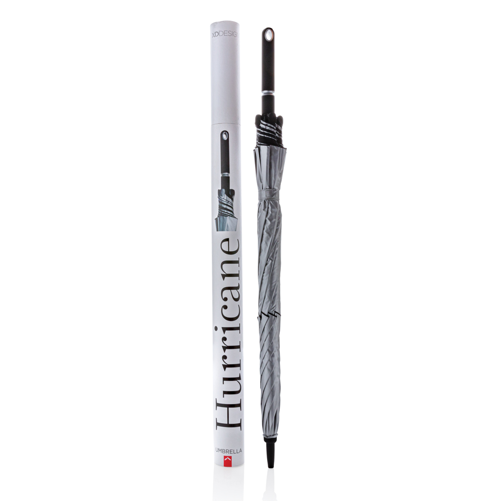 The Hurricane umbrella features a 27” double layered panel that is ideal for rough conditions and is dry again in no time due to the waterproof fabric. The unique opening mechanism provides ease of use when opening and closing. Registered design®