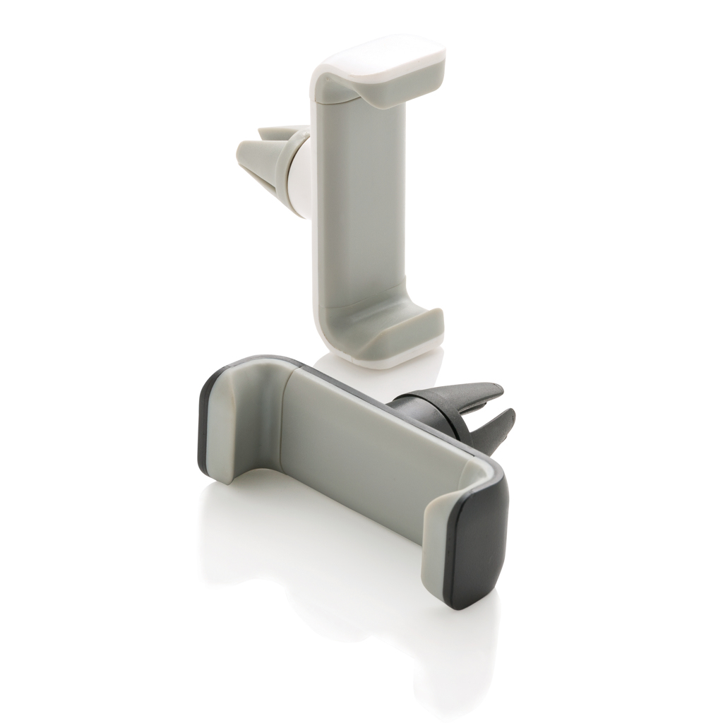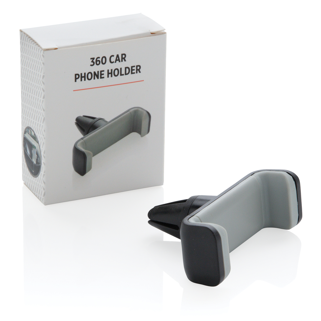 Universal and 360 degree rotatable car mount to hold your mobile phone when driving. Simply click the item on your air vent and place your mobile phone (up to 6”) in the holder. Made out of heat resistant ABS and strong silicone to make the item long lasting and avoid it from falling off your air vent while driving. With stainless steel mechanism inside to ensure your phone stays in place.
