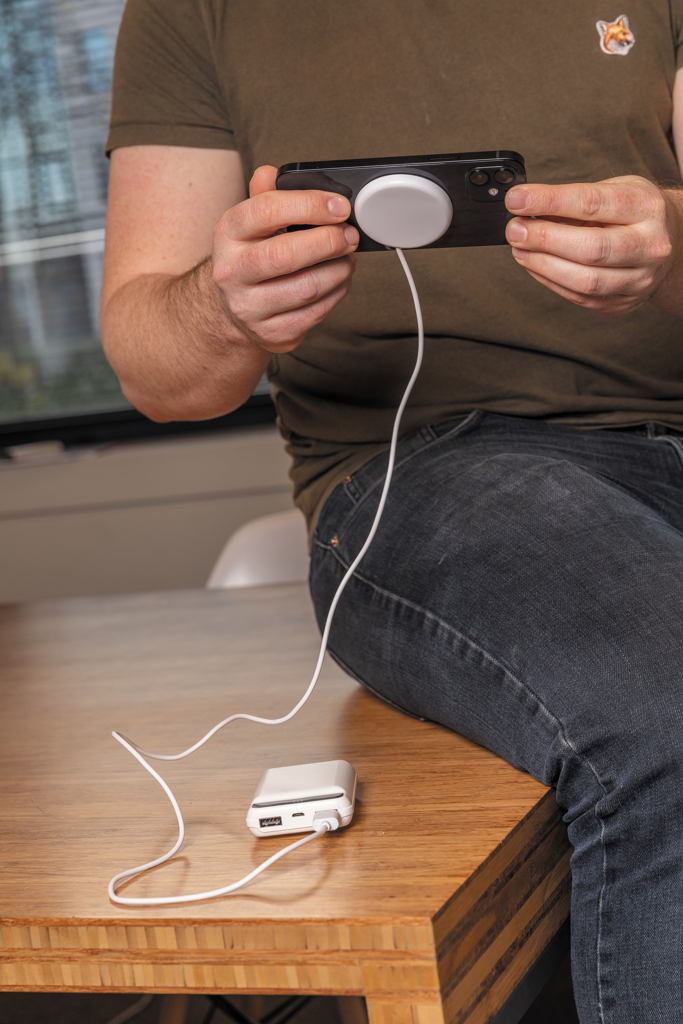 Snap on this magnetic wireless charger to the back of your iPhone 12 to charge your device. The magnets are perfectly aligned to always ensure the right charging position on your phone. The ABS material wireless charger is compatible with all QI devices (Iphone 8 and up and Android devices) so on other phones it can be used as a regular wireless charger. Including 100 cm TPE material micro USB cable. Item and accessories PVC free. Input DC 5V/1.5A; Output 5V/1.0A (5W) 11 pcs high quality N52H heat resistant magnets integrated.
