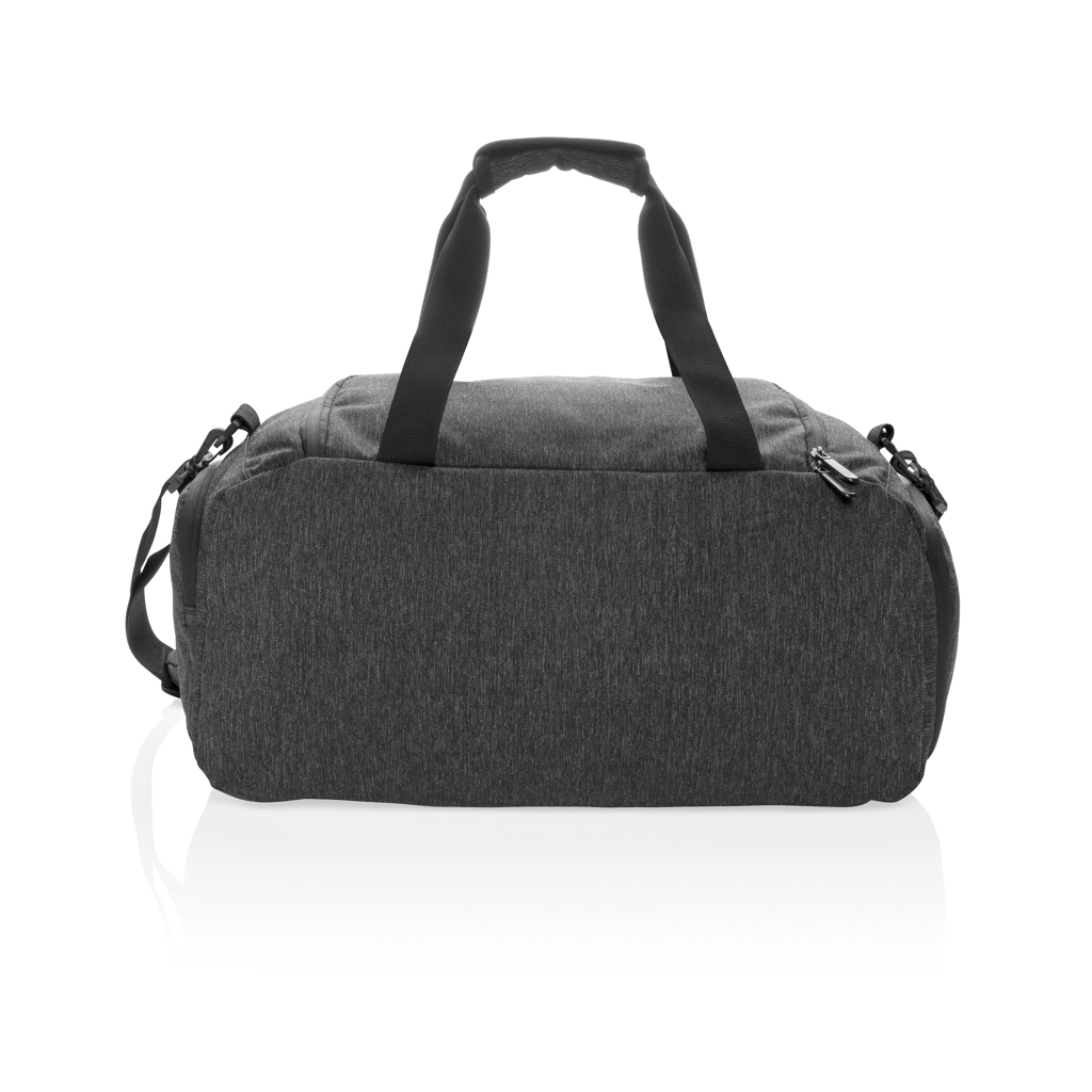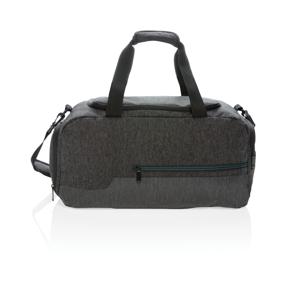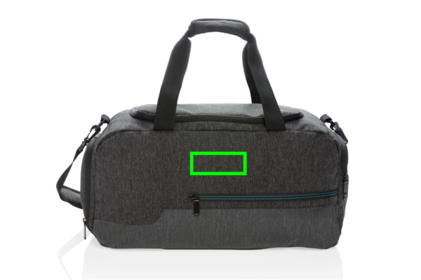 This 900D comfortable sized duffle bag is perfect for every active adventure and workout at the gym. It’s made from durable polyester fabric and features water resistant coating material to protect against dirty gym floors or wet fields. Detailed with reinforced handles and a padded shoulder strap that offers a versatile carrying option. This duffle features a roomy main compartment with an inside zipper pocket to hold cash or valuables plus a breathable pocket for your shoes. A front zipper pocket with convenient storage for your cell phone, keys and other frequently used accessories. PVC free.