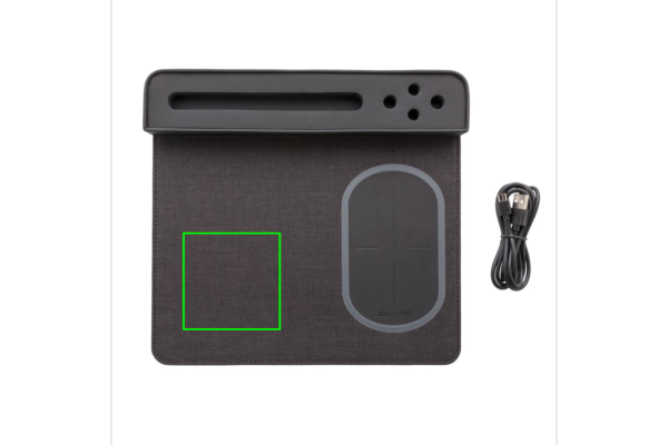 Quickly power up your smartphone by cable or any mobile device that supports wireless charging by simply setting it down on the right side of the mousepad. Sleek, slim rectangular mousepad design with anti-slip back comes with phone stand and 4 pen stands. Including 1.5m cable. Input: 5V/1A; Output 5V/1A; Wireless output: 5V/1A 5W.