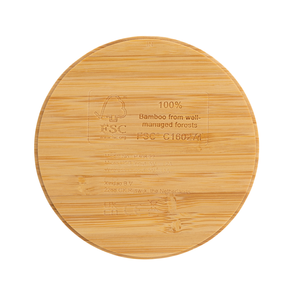 Charge your mobile devices without connecting a cable with this 100% FSC® certified 5W wireless charger. Just place your mobile phone on the pad and wait for the charging notification to appear. Compatible with all QI enabled devices like Android latest generation, iPhone 8 and up. Input: 5V/2A. Wireless output: 5V/1A. Including 150cm RCS recycled TPE micro USB cable. Item and accessories 100% PVC free. Packed in FSC®mix packaging.