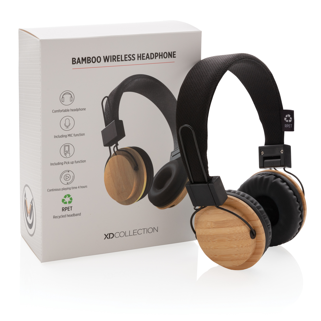 ECO bamboo wireless headphone made out of carefully sourced sustainable materials. The earpads are made out of bamboo and the headband is made out of polyester. The foldable headphone uses BT 5.0 for smooth connection up to 10 metres. With 200 mah battery that allows a play time of up to 4 hours on a single charge and re-charging is done in 2 hours. Including mic to pick up and answer calls.