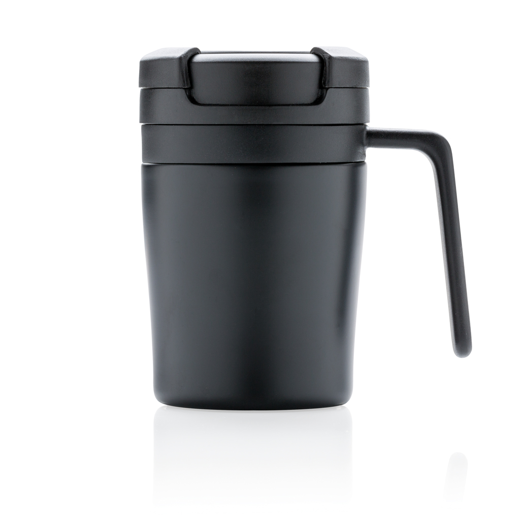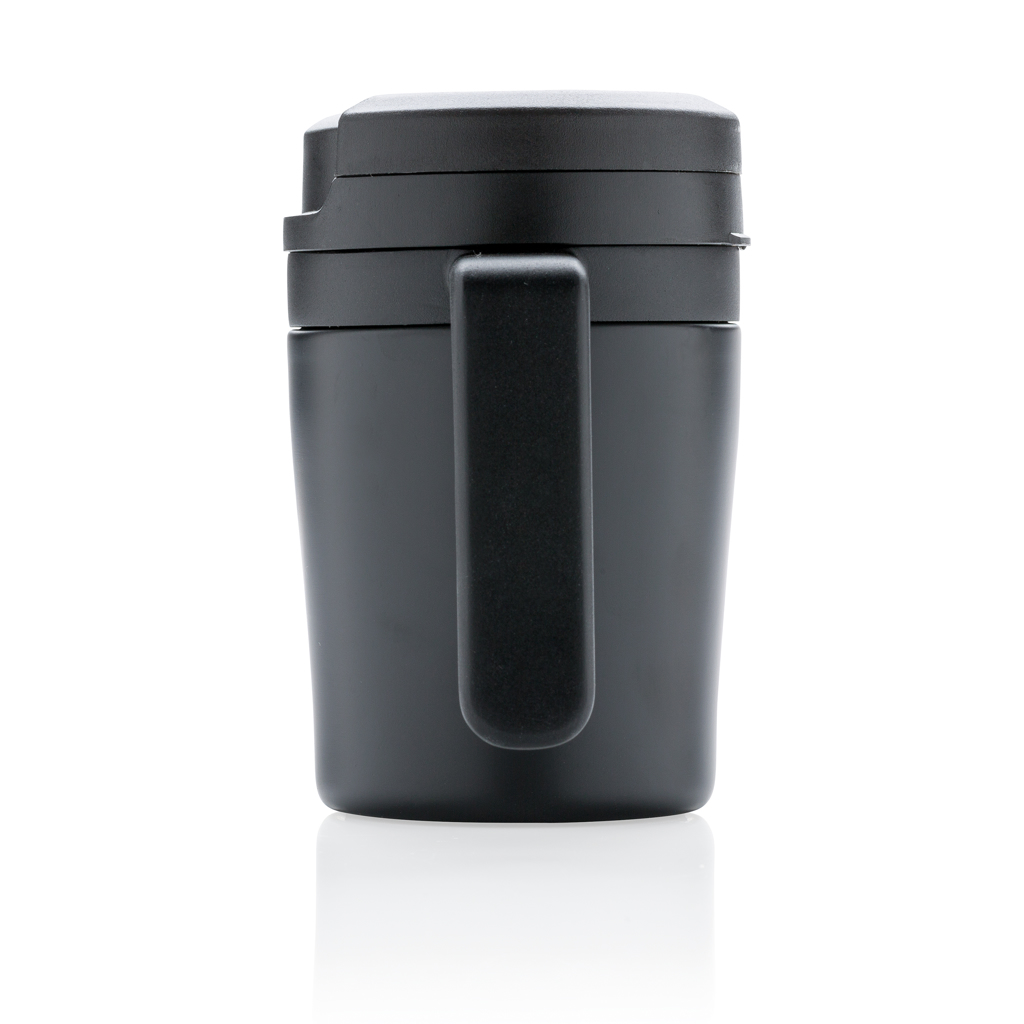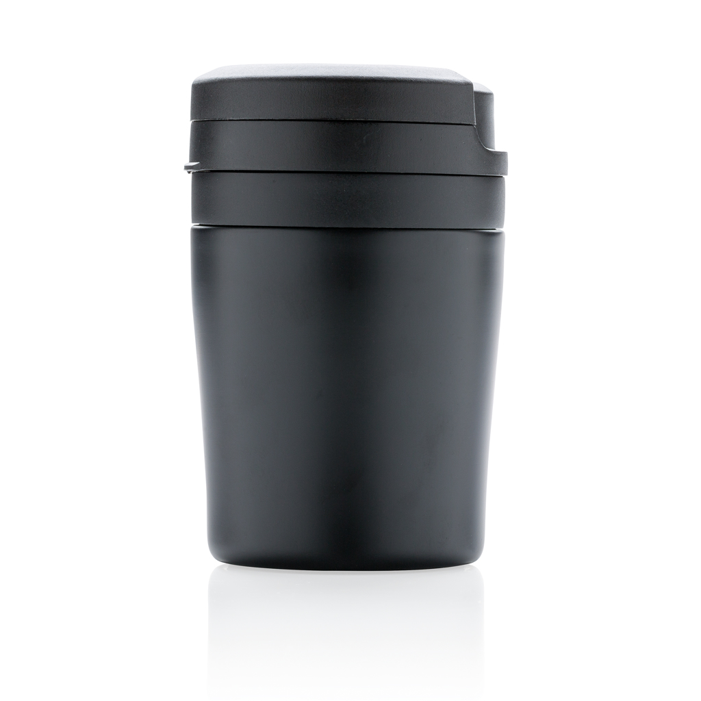 Less is more. Being 8cm high this is the perfect double wall mug for your coffee machine. PP inner. Great for Ristretto, Espresso and Lungo coffee. Nice handle for 1 hand drinking. Easy twist spill proof lid. Hand washable only. Content 160ml. Registered design®