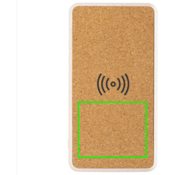 8000 mah wireless powerbank with 5W wireless charger on top. The top side is made from natural cork and the casing is made from 35% wheat straw mixed with ABS. Input optional via micro USB or type C. When fully charged it will provide you with enough energy to re-charge your mobile phone up to four times. The powerbank contains a long-lasting grade A 8.000 mAh lithium polymer battery. The power indicators will indicate the remaining energy level so you always know when to re-charge. Wireless charging compatible with all QI enabled devices like Android latest generation, iPhone 8, 8S and X. Micro input 5V/2A Type-C input 5V/2A USB Output 5V/2.1A. Wireless Output 5W 5V/1A. Item and accessories 100% PVC free.