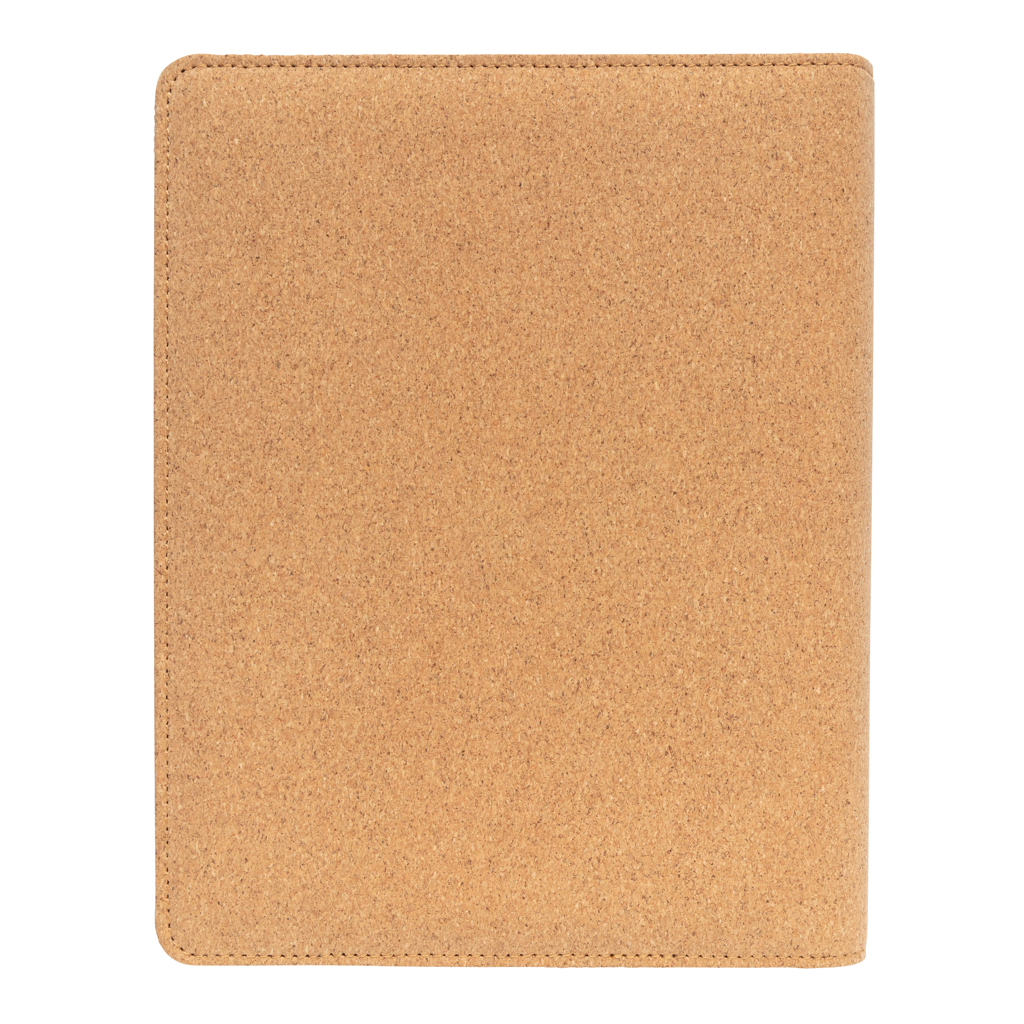 Keep all your work essentials organised in this beautiful A5 cork portfolio with black details. Inside the portfolio you can find a matching notebook and pen. The notebook contains 64 sheets/128 sheets cream coloured lined 80gm/s paper. Inside you will find 1 big sleeve pocket, a phone pocket, 2 card slots and a pen loop. Elastic closure. Including matching cork and wheatstraw pen. Comes in kraft gift box.