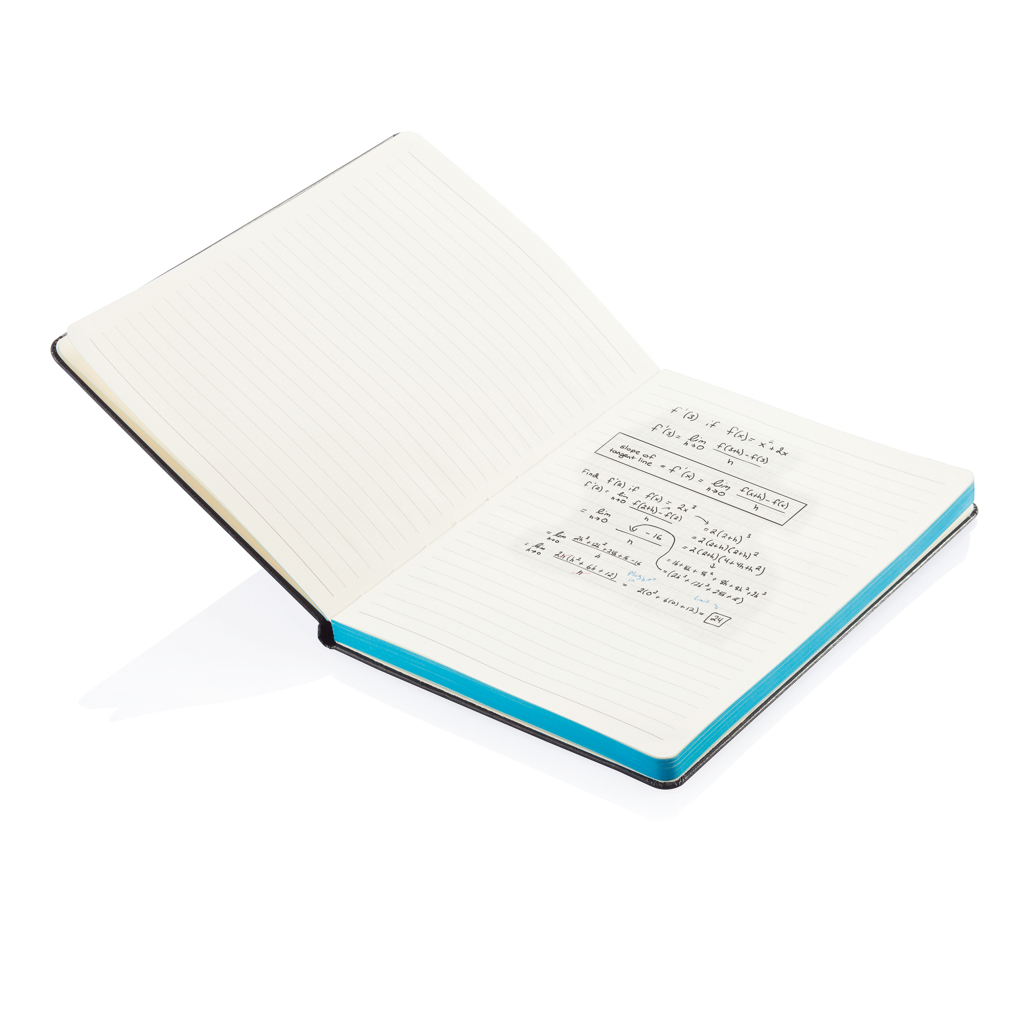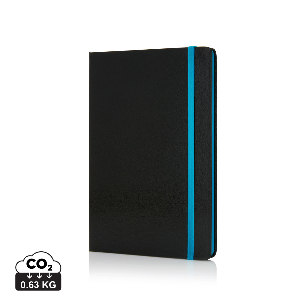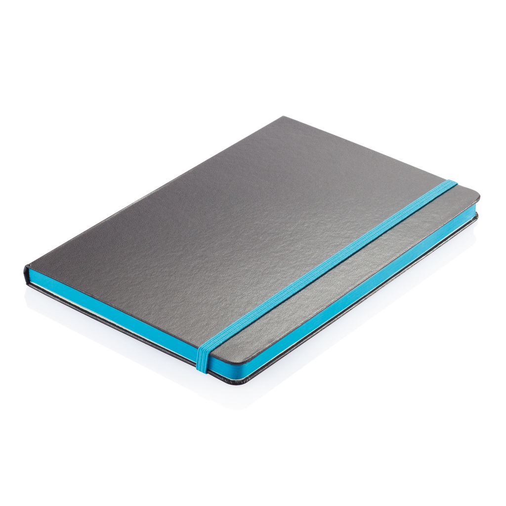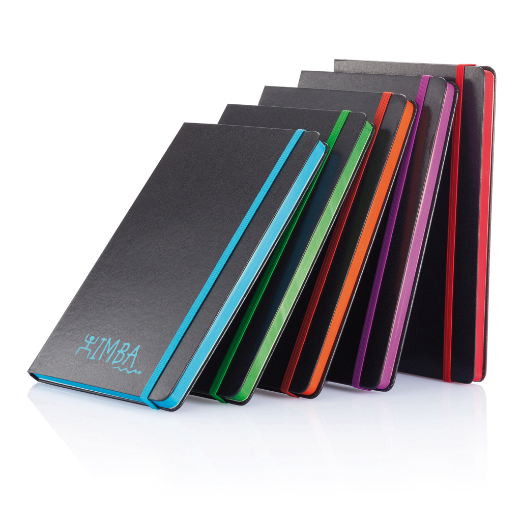 Fashionable hardcover notebook with 160 pages of 80g/m2 paper. The side of the pages are matching with the elastic band.