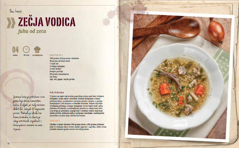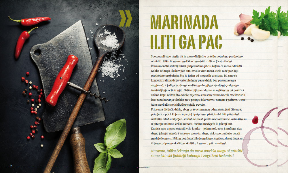 Lovačka kuharica Divlji u kuhinji donosi niz jednostavnih recepata koje će lako spremiti svaki zaljubljenik u kuhanje. No, iako su jela relativno jednostavna, doživljaj pod nepcem je vrhunski