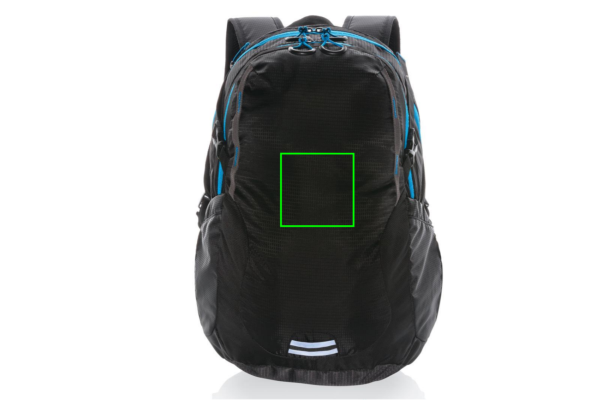 Carry and protect your items inside this sporty backpack. The medium hiking backpack is made from ribstop fabric and features a medium sized shape with interior and exterior storage pockets and a mesh back padding that makes it comfortable to carry. This backpack has a roomy main compartment with a sleeve pocket to hold your 15.4 inch laptop. The integrated rain cover will protect your bag from rainfall. Contrast details add a splash of colour and a touch of sporty style to the overall design. PVC free.