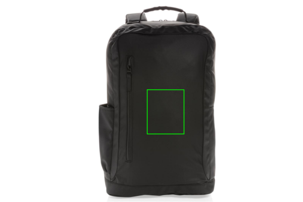 Look effortlessly stylish when carrying this all black laptop backpack. This bag holds a roomy compartment for all your gear and a laptop compartment that can hold a 15.6″ laptop. PVC free.