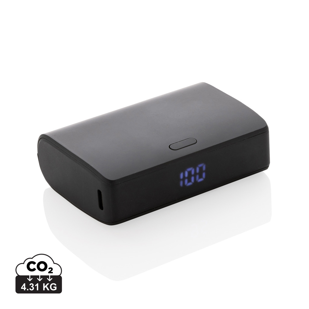 10.000 mAh 20W PD powerbank where the case is made out of RCS certified recycled ABS plastic. RCS (Recycled Claim Standard) is a standard to verify the recycled content of a product throughout the whole supply chain. Total recycled content: 16% based on total item weight. With its sleek and space-saving design Flashcharge is remarkably compact, ensuring you can carry it effortlessly wherever you go. Experience lightning-fast charging for both iOS and Android devices. No more long waiting times; this powerbank ensures your devices reach full power in record time. The powerbank itself supports 18W fast re-charging so the powerbank can re-charged faster than a regular powerbank. Equipped with a Quick Charge 3.0 USB-A port and a 20W PD Type-C port, you can charge multiple devices simultaneously, without compromising on charging speed. Keep track of your power reserve with the integrated LED screen, ensuring you are never caught with a depleted battery when you need it most.