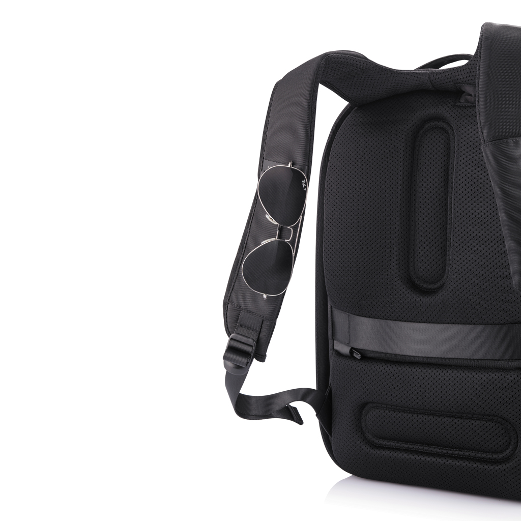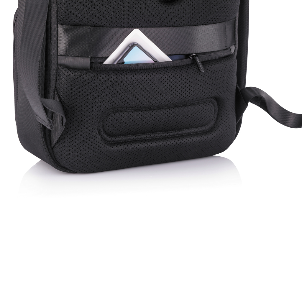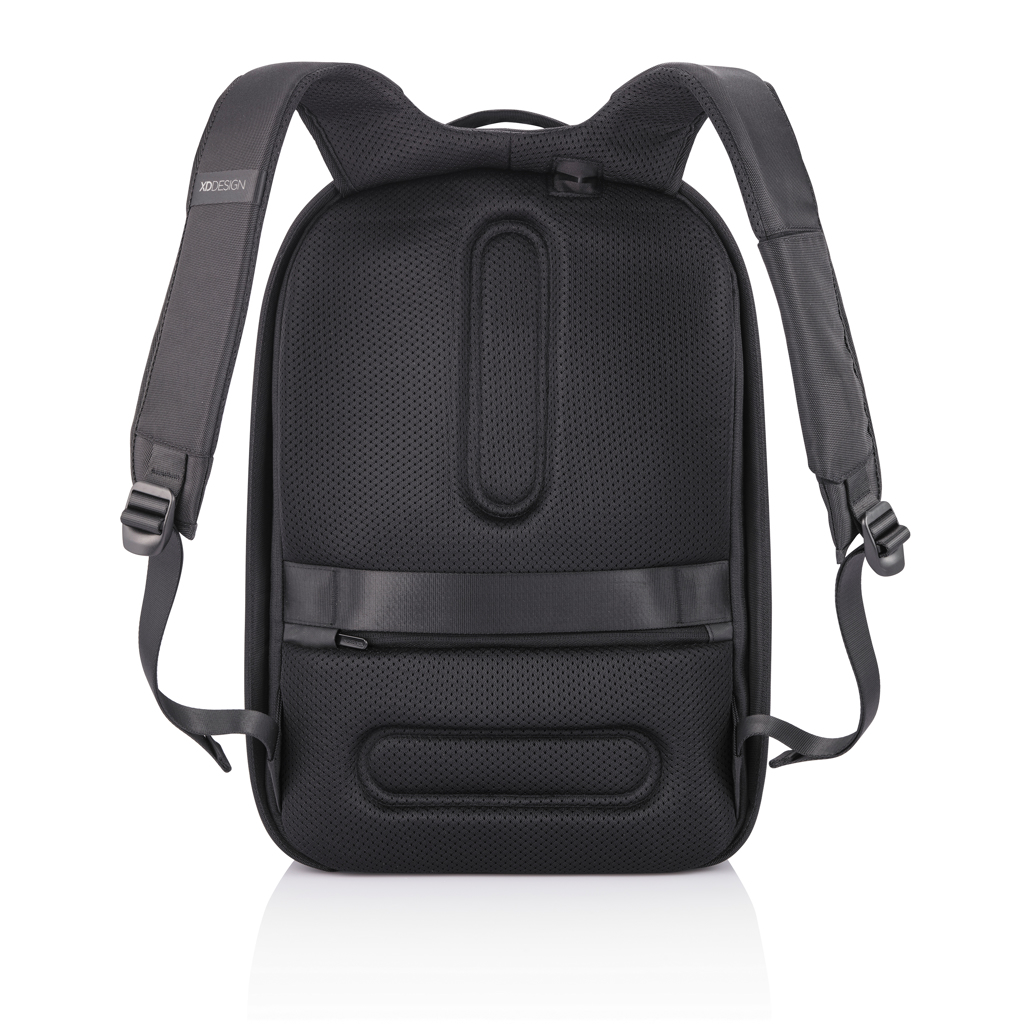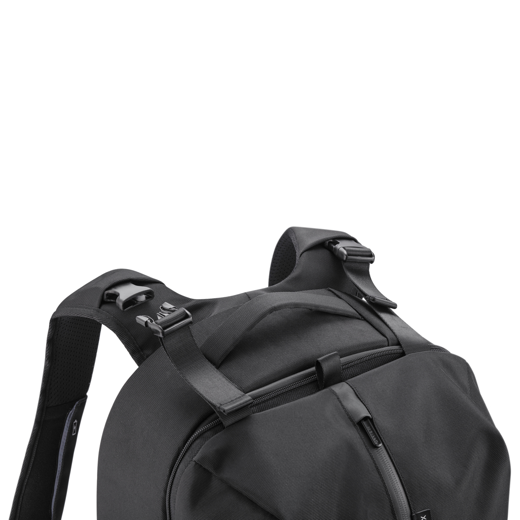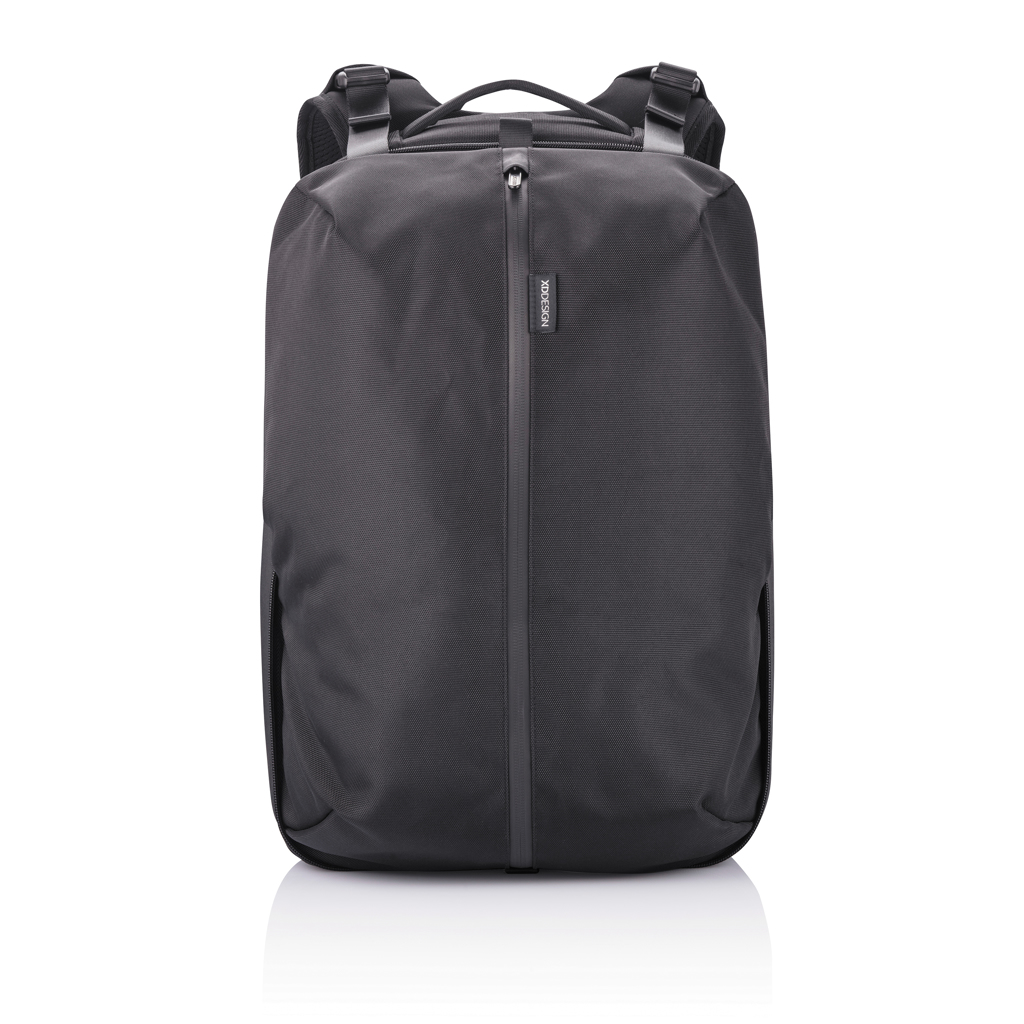 Flexible and practical, the Flex Gym bag is the first business backpack and gym bag in one. Quickly convert this backpack from business to gym style by expanding the front pocket from 16 to 24 litres. The anti-theft design with no front access and hidden zippers in the main compartment will ensure that you carry your professional devices securely. With the RFID-protected pocket on the back, you can safely store your wallet, cell phone, or credit cards. Additionally, this backpack keeps you powered with a fast USB charging port on the shoulder strap where you can also find a sunglasses holder. The Flex Gym bag is the perfect backpack whether you are on your way to work, university, or the gym. Made from R-pet fabric with the AWARE™ tracer. With AWARE™, the use of genuine recycled fabric is guaranteed. 42% recycled content. Registered design®