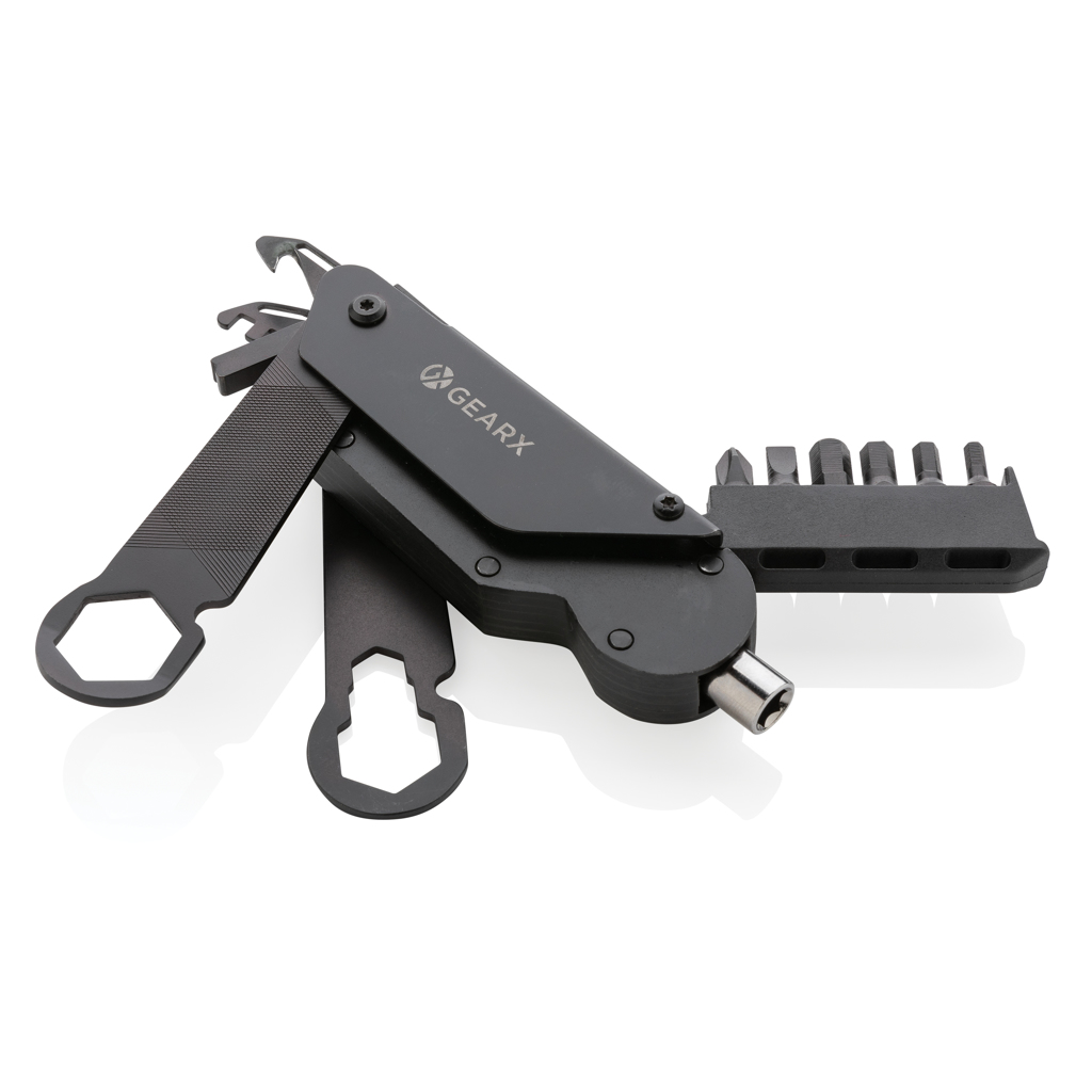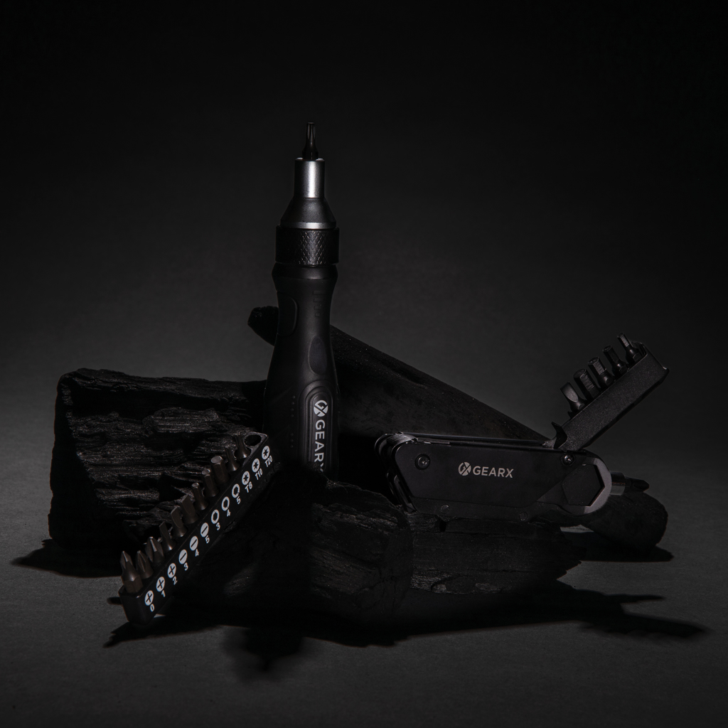 If you have a job to do on your bike, make sure you do it in style. This premium quality bike tool comes with all the tools needed to fix your bike in no time. The luxury aluminum body is matched with premium grade 420 stainless steel tools all in solid black. The durable tools are made to last a long time. The 16 functions include: Bit handle, integrated bit holder ( S2.5, S2 5mm, S2 4mm, S3 3mm, S2 6mm, S2 PH2) , spoke 3.4/3.3, box cutter, adaptor, multi function 18mm wrench with lock, second multifunction wrench 15/10/8 mm with lock, file. Packed in luxury gift box.Hardness level of bit 60-62 HRC. Hardness level of tools 40-45 HRC
