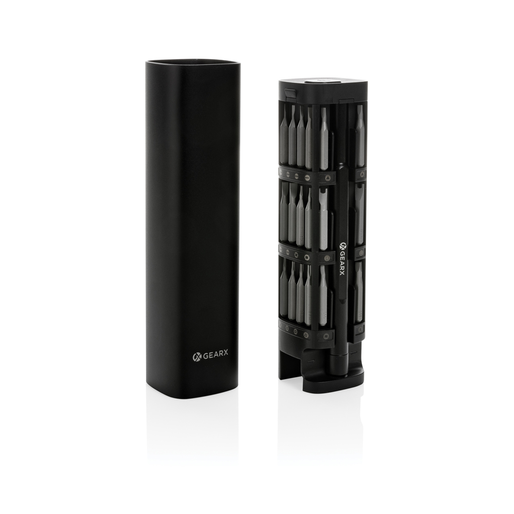 The ultimate high-performance precision bit kit includes essential parts for repairing mobile phones, tablets, PCs and other items. Most electronics life can be extended easily with a simple repair that often can be found online in “how to” guides. 46 pcs packed in case made with RCS certified recycled aluminum. Total recycled content: 22% based on total item weight. RCS certification ensures a completely certified supply chain of the recycled materials. Set includes screwdriver handle and tweezers. The bits are magnetic and are easy to place and take out from the case.