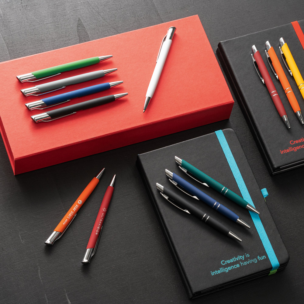 Kemijska olovka od aluminija s klipom i gumiranom završnicom. Plava tinta. ø11 x 139 mm