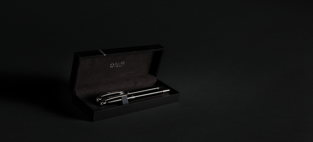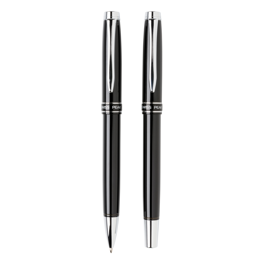The Swiss Peak Heritage collection speaks the language of modern elegance. Luxury brass metal ballpen and rollerball set packed in Swiss Peak giftbox. Both metal refills with minimum of 1200m writing length and German ink.