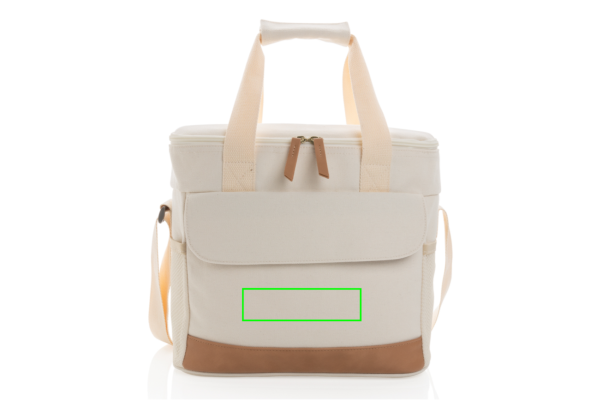 Pack your favourite food or beverages in this chic cooler bag! This beautiful 16oz. recycled canvas large cooler bag can store up to 20 cans. With 2 mesh side pockets and 1 front pocket for extra storage. With beautiful PU details. The AWARE™ tracer validates the genuine use of recycled canvas. 2% of proceeds of each Impact product sold will be donated to Water.org. Composition 60% recycled cotton and 40% recycled polyester. Lining in PEVA.