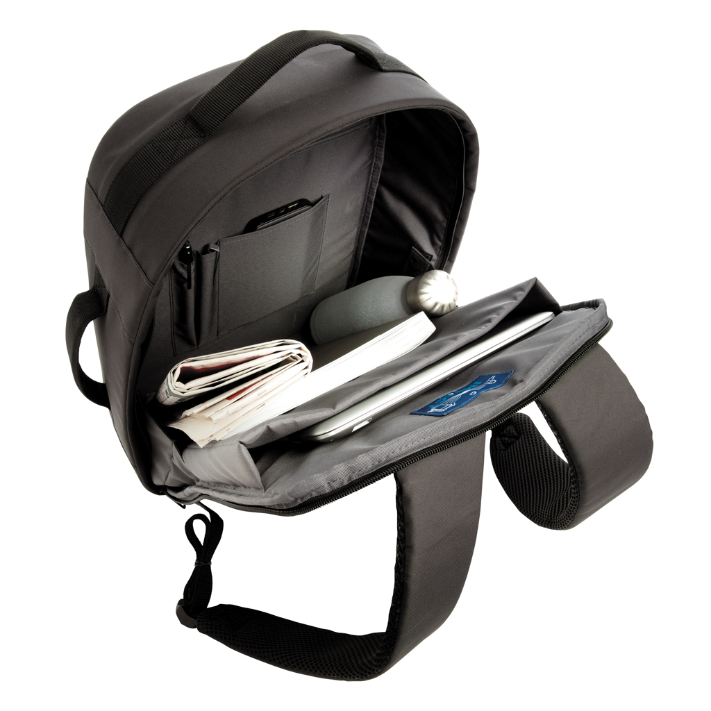 No greenwashing, but telling a true story about sustainability! This Impact collection is made with AWARE™ tracer. With AWARE™, the use of genuine recycled fabric materials and water reduction impact claims are guaranteed, by using the AWARE disruptive physical tracer and blockchain technology. Save water and use genuine recycled fabrics. If you choose this item you save 20 litres of water and 33 plastic bottles have been reused. With the focus on water, 2% of proceeds of each Impact product sold will be donated to Water.org. The AWARE™ deluxe 15.6″ laptop backpack impresses with its modern and simple look. The clean design makes the backpack highly versatile and ideal for work or leisure. The roomy main compartment fits a 15.6 inch laptop. The inside sleeve and zipper pockets keeps your small essentials organised. Interior and exterior 100% recycled polyester with AWARE™ tracer. PVC free.Impact savings are based on reliable LCA data from the Textile Exchange.