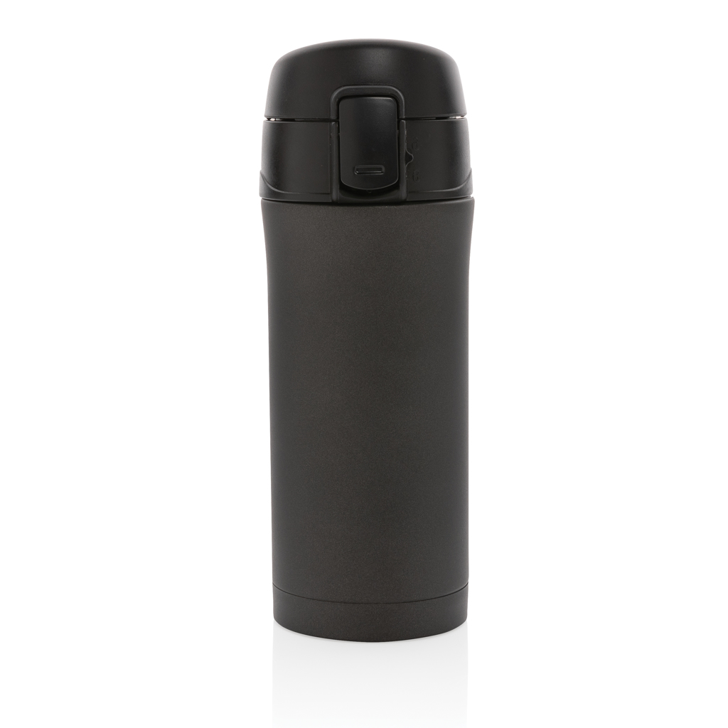 A beautiful metallic version of this great double wall stainless steel vacuum mug that keeps your drink warm for up to 5 hours or cool for up to 15 hours. The lid is lockable and therefore avoids any risk of leaking or spilling. The lid is easy to keep clean for optimal hygiene and is dishwasher safe. The unique design of the mug allows you to drink conveniently and safely with one hand directly from the mug. The size of the mug is suitable to place in any car drink holder. Capacity: 300 ml.