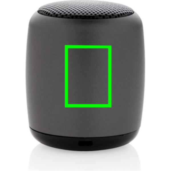 Pocket size 3W wireless speaker with surprisingly powerful sound. Made out of durable aluminium. With 180 mAh battery that allows a playing time up to 3 hours on one single charge and operating distance of 10m using BT5.0. Including PVC free TPE material charging cable.