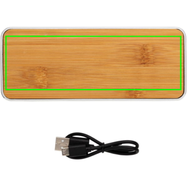Luxury 3W wireless speaker that combines aluminium, fabric and bamboo material all in one product. The wireless speaker uses BT 5.0 for smooth connection up to 10 metres. Play time up to 4 hours on one charge and re-charge in 1.5 hours. With built in sub-woofer for enhanced bass performance. Including PVC free TPE micro usb cable for re-charging.