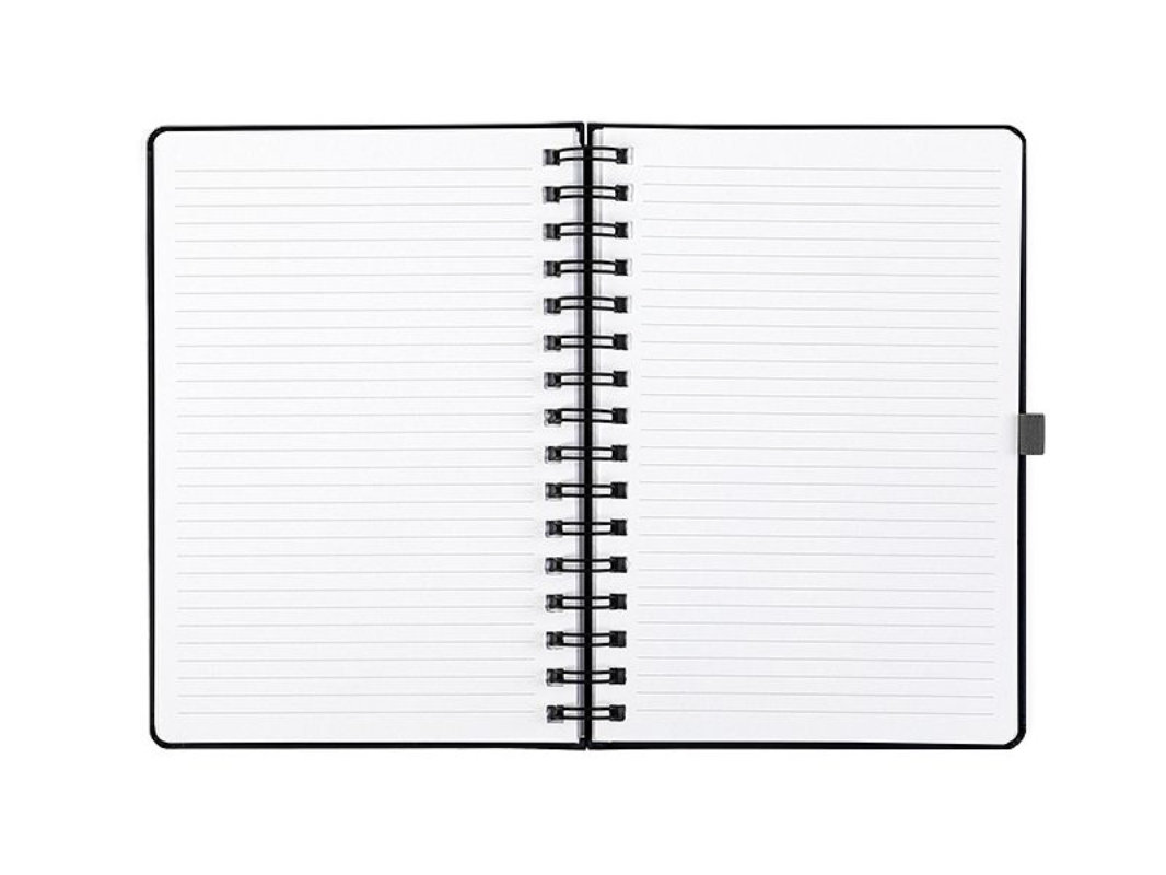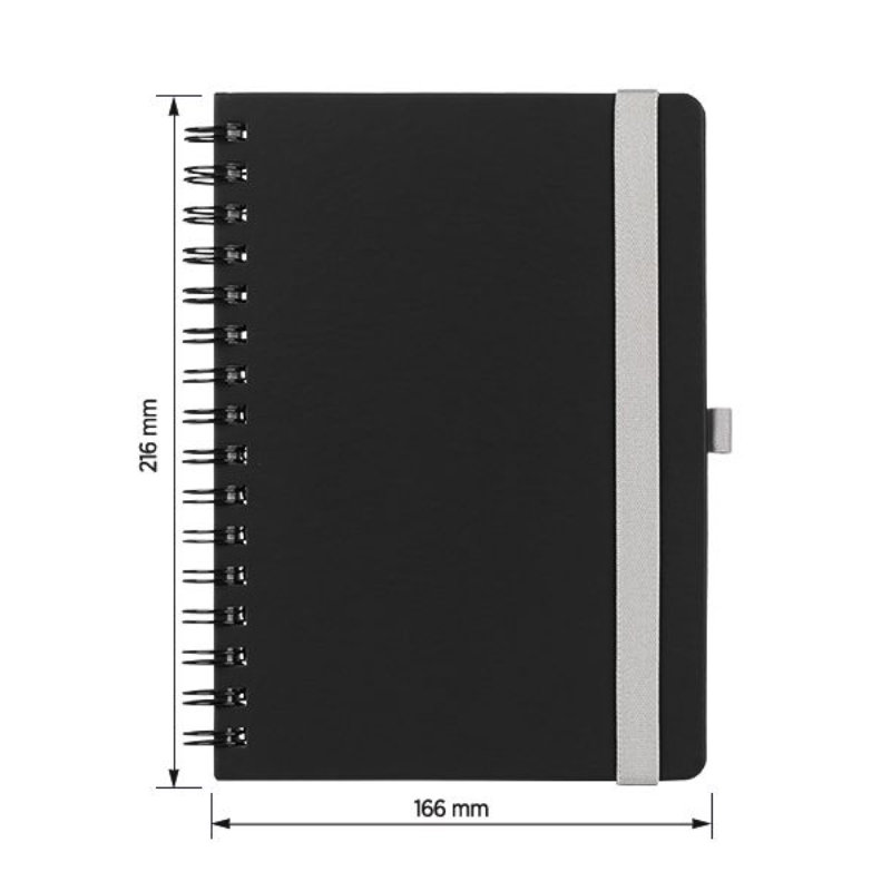KNJIŽNI BLOK: format: 16 x 21 cm; opseg: 192 str.; sadržaj: crtovlje; tisak: u 1 boji na bijelom papiru gramature 80 g/m²; zaobljeni uglovi; • KORICE: korica je izrađena od materijala koji je preporučljiv za foliotisak, sitotisak i digitalni tisak; zaobljeni uglovi; gumice i držač za olovke siva boja;spiralni uvez.i • PAKIRANJE: 20 kom. Izrađeno u Europi