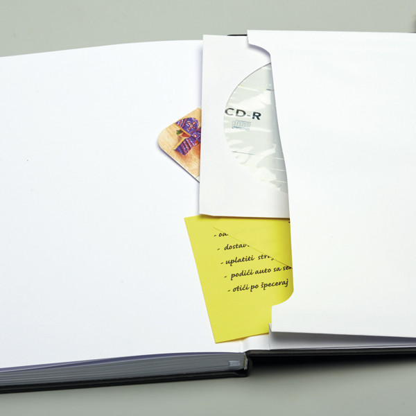 Tisak: u 1 boji na bijelom papiru gramature 80 g/m²; zaobljeni uglovi; predlist, zalist i džepić tonirani u sivu boju