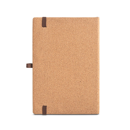 A5 bilježnica s krutim koricama od listova bambusa i pluta. Sadrži 160 stranica, izrađeno od 100% recikliranog papira, podstavljeno u boji slonovače, traku za odvajanje, elastičnu traku i držač za biros (nije uključen). 140 x 210 mm