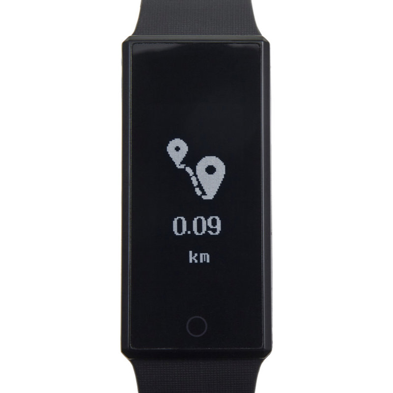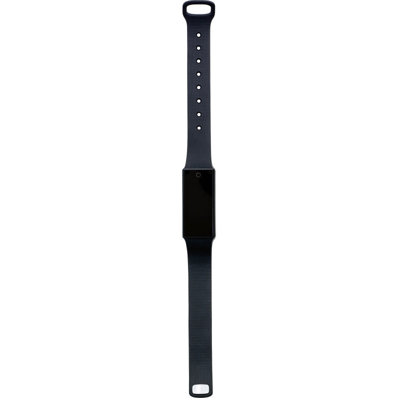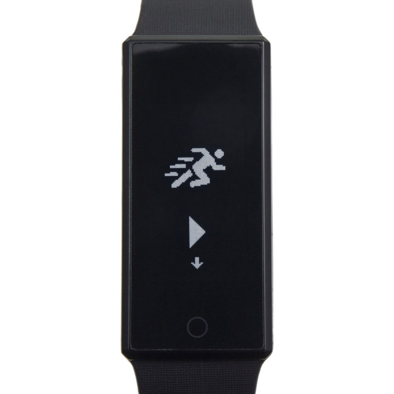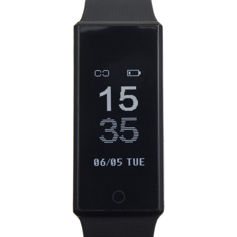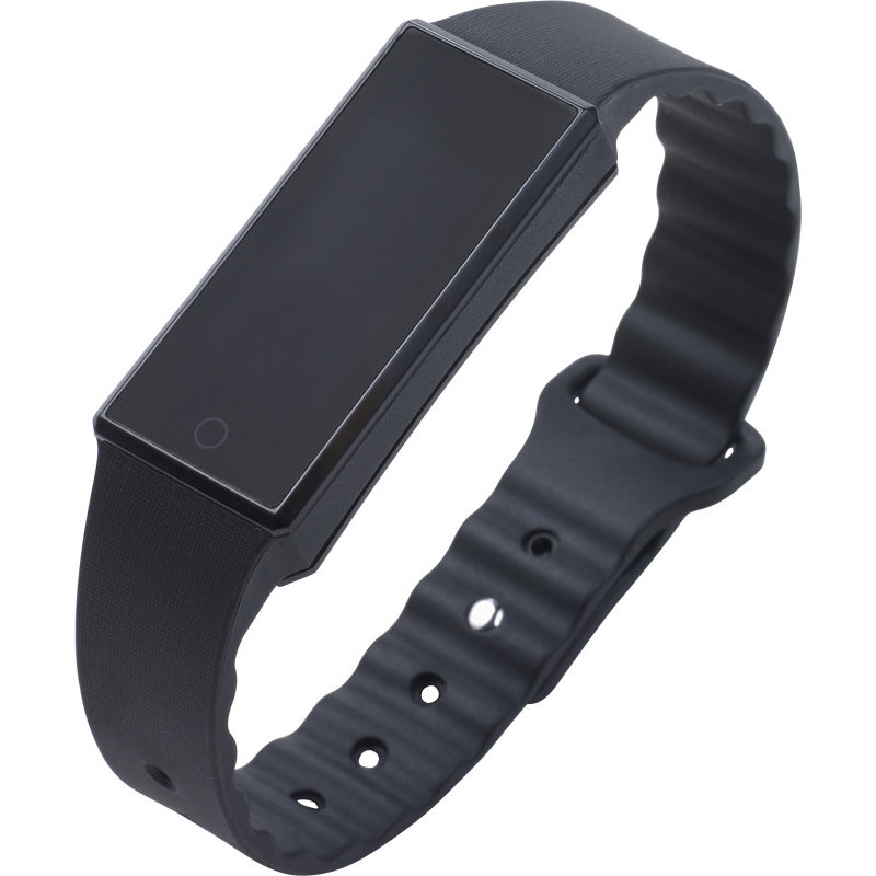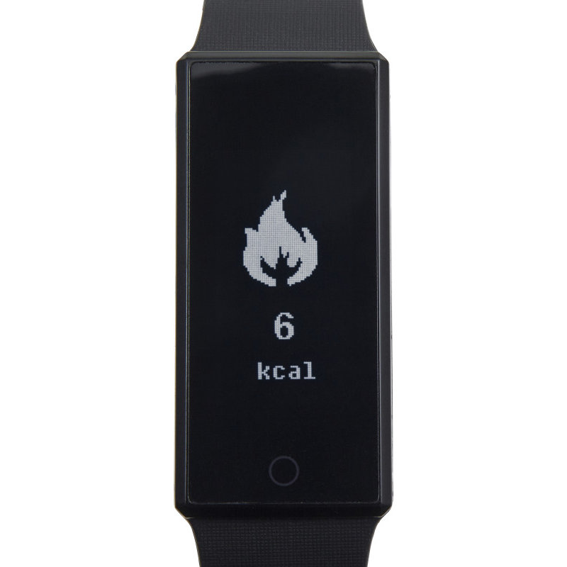Pametni sat od nehrđajuček čelika sa silikonskim remenom i metalnom pločom za graviranje. Pokazuje vrijeme, broji korake i kalorije, mjeri udaljenost, otkucaje srce i san. Rezolucija ekrana je 128 x 64. Pakirano u bijelu kutiju.