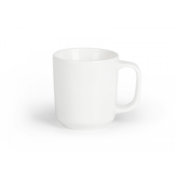 PORCULANSKA ŠALICA, 275 ml. Veličina: Ø8×8.8 cm. Veličina otiska: 4.5 x 4.5 cm. Pakiranje: 12 / 48. Preporučeni tisak: tampon tisak, preslikači.