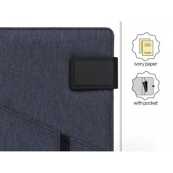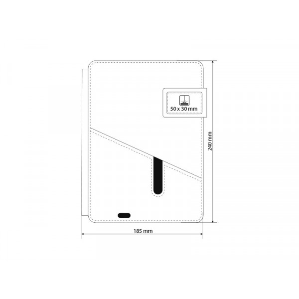 Notes A5 sa pomoćnom baterijom 4000 mAh sa izlazom 5V/2.1A i USB punjačem, postolje za telefon, dodatnim džepovima, držačem za olovku, u poklon kutiji. Knjižni blok: otisnut na krem offset 80g/m2 papiru, 128 strana sa linijama. Korice: tekstil, Dimenzije: 18.5x24x3 cm, Pakiranje: 20/1. Preporučeni tisak: lasersko graviranje, digitalni tisak, sitotisak