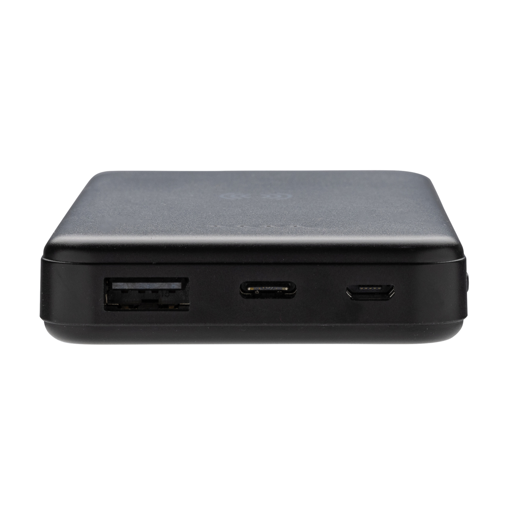 5.000 mAh pocket size powerbank with 5W wireless charger where the case is made out of RCS certified recycled ABS plastic. RCS (Recycled Claim Standard) is a standard to verify the recycled content of a product throughout the whole supply chain. Total recycled content: 26 % based on total item weight. When fully charged the powerbank provides you with enough energy to re-charge your mobile phone up to two times. The powerbank contains a long lasting grade A 5.000 mAh high-density lithium polymer battery. The power indicators will indicate the remaining energy level so you always know when to re-charge. Micro USB Input 5V/2A; Type-C Input 5V/2.4A; USB output 5V/2.4A, Type C output:5V/2A Item and accessories PVC free. Including RCS certified recycled TPE charging cable. Packed in FSC® mix packaging.