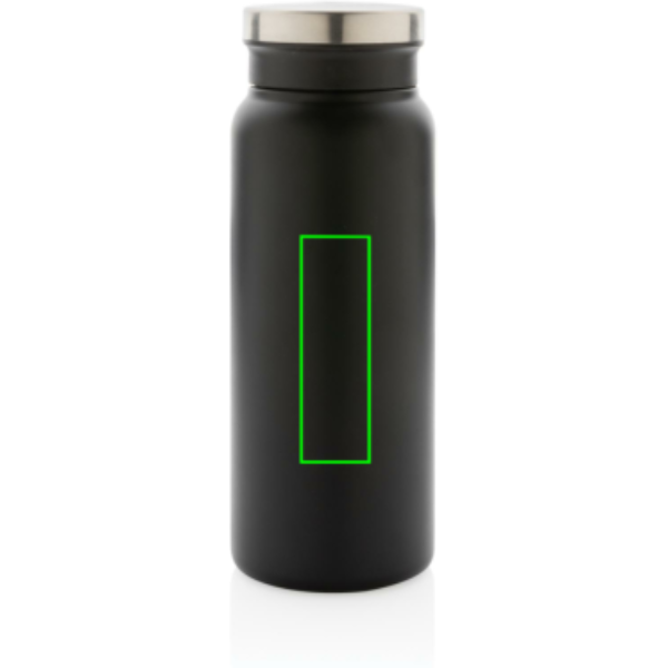 This RCS Recycled stainless steel vacuum bottle comes with a secure screw-on lid that features a wide opening for easy cleaning and filling. The additional PP insert ensures that the bottle is leakproof. This bottle is made from recycled stainless steel and features a double-wall construction to keep your favourite beverages warm for up to 5 hours or cold for up to 15 hours. Made with RCS (Recycled Claim Standard) certified recycled materials. RCS certification ensures a completely certified supply chain of the recycled materials. Total recycled content: 77% based on total item weight. BPA free. Capacity 600ml. Including FSC®-certified kraft gift box.