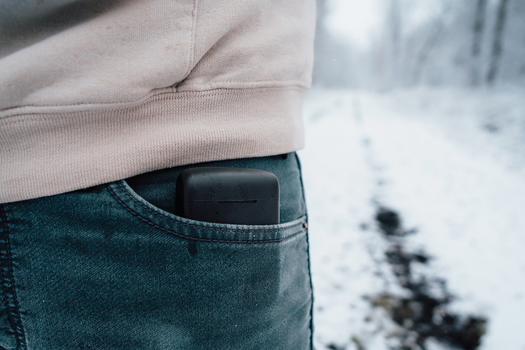 Unique double chargeable wireless earbuds with integrated solar panel in the casing made with RCS certified recycled ABS. Total recycled content: 21% based on total item weight. RCS certification ensures a completely certified supply chain of the recycled materials. The speaker uses high quality monocrystalline solar panels with 19% conversion rate. Charge rate depends on conditions. Charging speed solar: 5V/50mA. The perfectly fitting earbuds have a 35 mAh battery and can be re-charged in the 300 mAh charging case within 2 hours. With auto pairing function so easy to pair to your mobile device. Playing time on medium volume up to 5 hours. With BT 5.3 for optimal connection. Operating distance up to 10 metres. With pick up and mic. Including 3 size silicone ear tips abd RCS certified recycled TPE charging cable. Packed in FSC® mix kraft packaging. Item and accessories 100% PVC free.