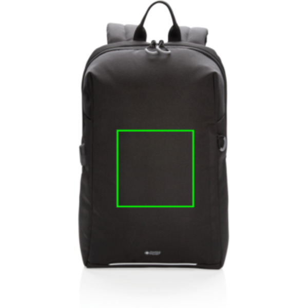 This stylish carry-on laptop backpack is intended for business and leisure trips. It’s designed with a padded 15.6″ laptop compartment to protect your device. Including trolley strap and USB A output. Side quick access pocket with RFID protection. Front with reflective safety strip. PVC free. With AWARE™ tracer that validates the genuine use of recycled materials. Each bag has reused 22 PET bottles. 2% of proceeds of each Aware™ product sold will be donated to Water.org.