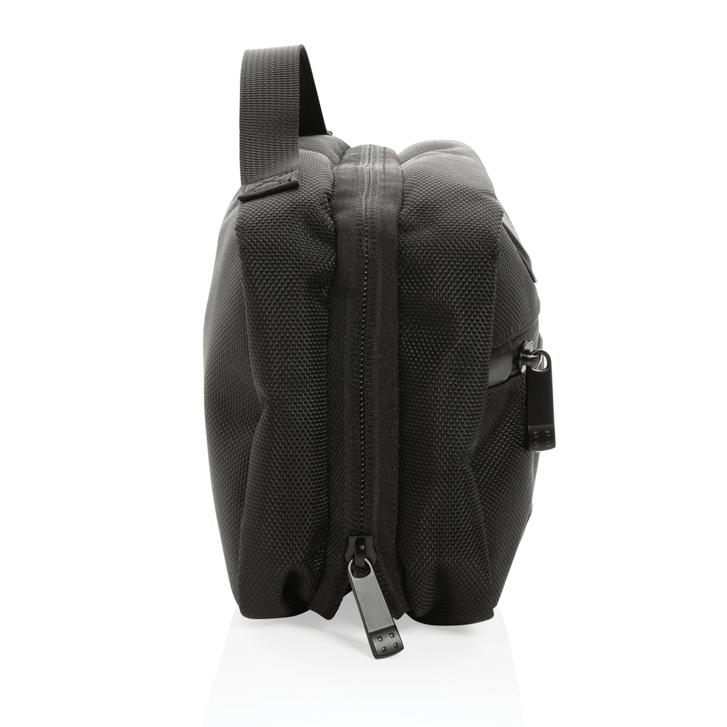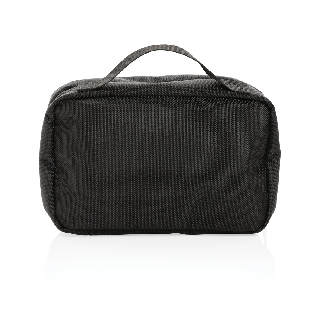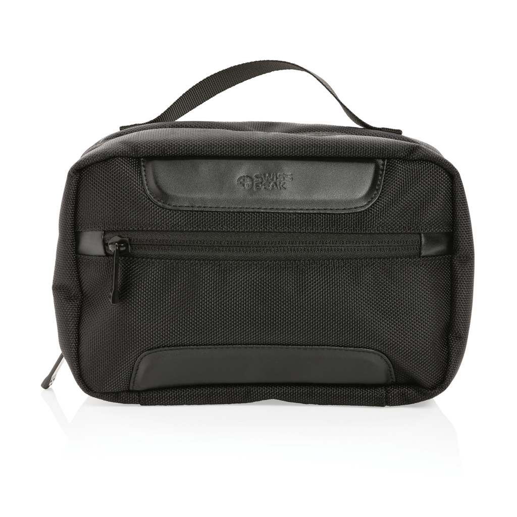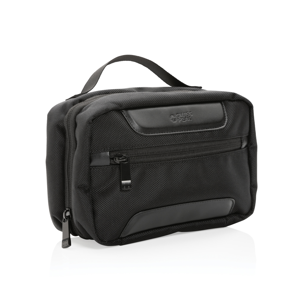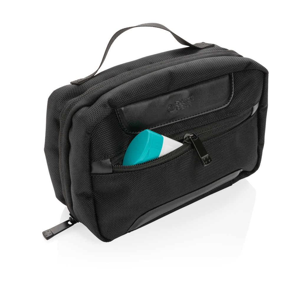 The Swiss Peak AWARE™ RPET Voyager toiletry bag is made from durable 1680D recycled polyester with rich PU details that give the toiletry bag a very sophisticated look. The toiletry bag has two roomy zipper compartments to hold all your toiletry essentials. The exterior is made from 1680D recycled polyester and the lining is 150D recycled polyester. With AWARE™ tracer that validates the genuine use of recycled materials. Each toiletry bag has reused 10.14 0.5L PET bottles. 2% of proceeds of each product sold containing AWARE™ will be donated to Water.org.