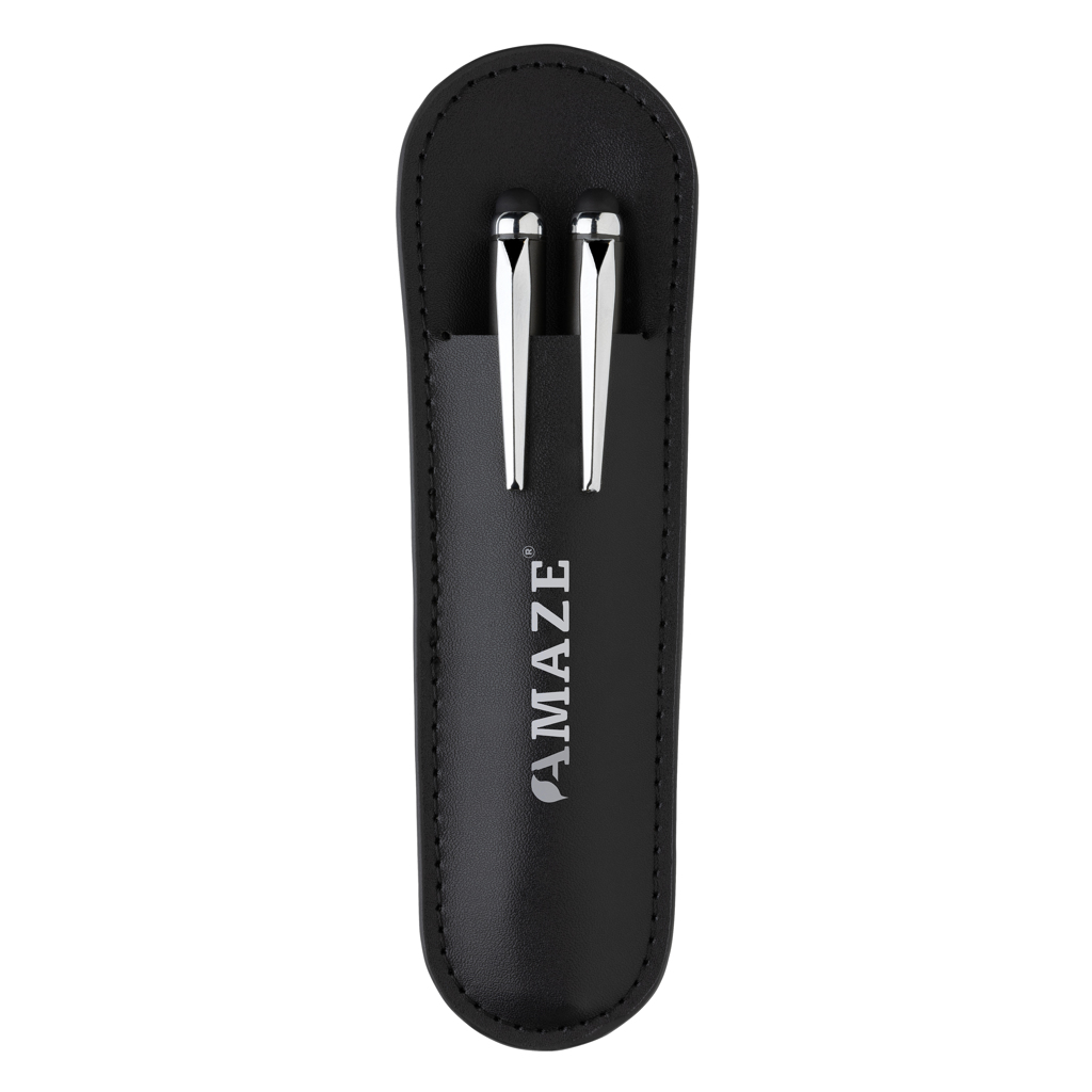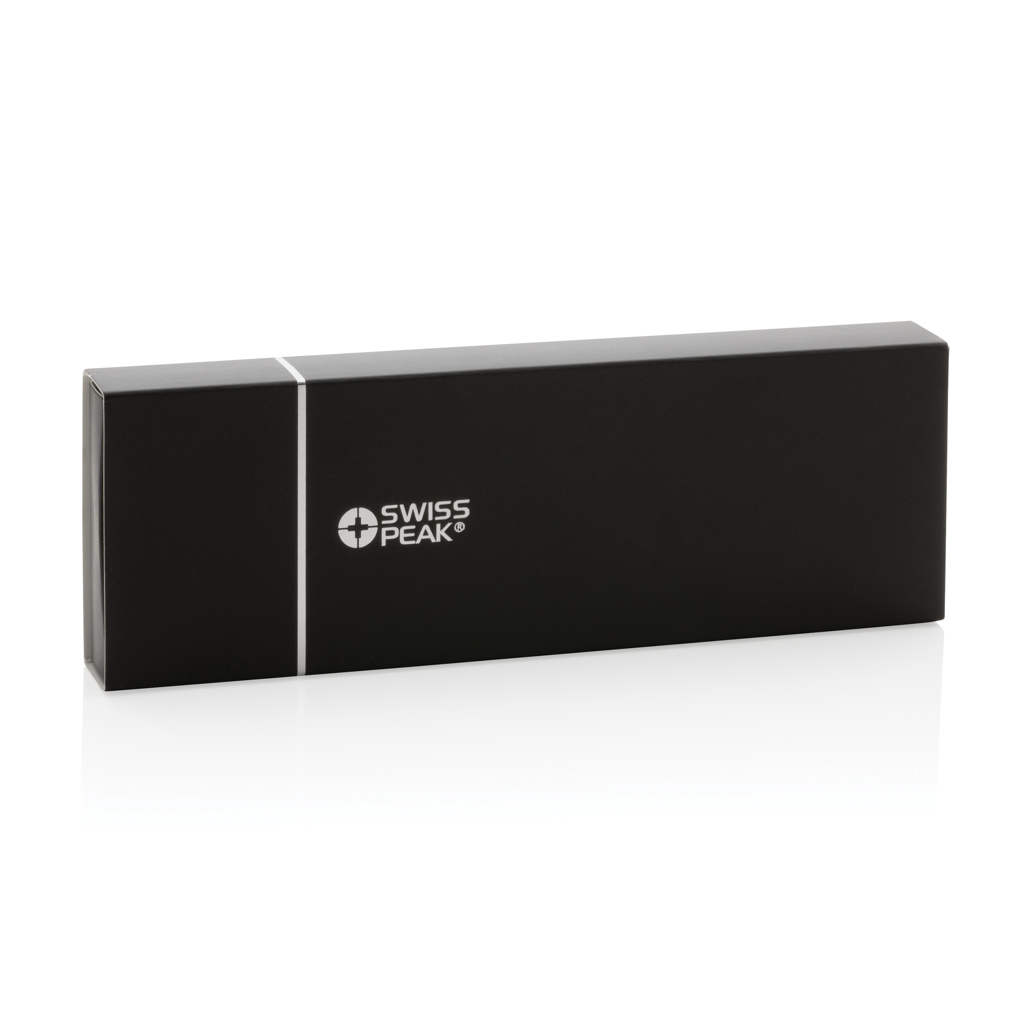 This Swiss Peak deluxe pen set includes one ballpoint and one rollerball to deliver the total writing experience. Both of the items featured in this gift set feature a quality aluminium barrel and beautiful matt gunmetal finish. Each pen includes blue coloured Dokumental ink. The writing length for the pen is 1200 metre and the roller ball is 400 metre. The pen set comes in a luxury PU pouch and black gift box.
