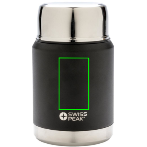 The Swiss Peak Elite series are with vacuum insulation and double wall 18/8 grade stainless steel. The powder coated black colour is built to last! No fading or cracking here! The inner wall is plated with copper for ultimate conductivity to keep drinks hot for 8 hours and cold for 24 hours. This food container keeps your food hot or cold all day long! A 18/8 SS spoon is included. Hand wash only. Leakproof. Content 500 ml.