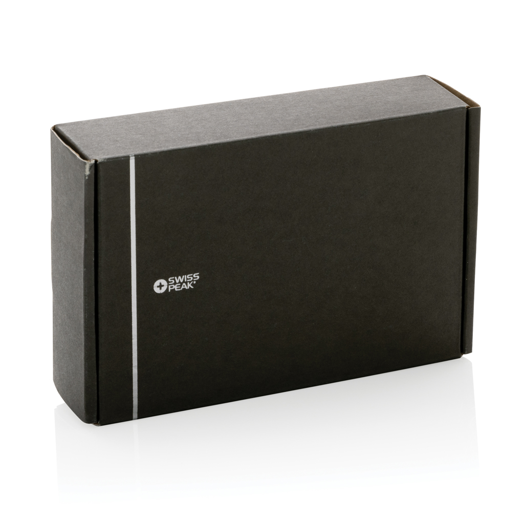 Luxury and foldable 3-in-1 wireless charger made with RCS recycled ABS Total recycled content: 46% based on total item weight. RCS certification ensures a completely certified supply chain of the recycled materials. The wireless charger comes equipped with a magnetic 15W wireless charger and an additional 5W wireless charger suitable for earbuds cases or other small wireless chargeable devices and a 2.5W wireless charger for smartwatches ( Apple watches only). Including RCS certified 120 cm recycled TPE cable. Packed in FSC® mix kraft packaging. Item and accessories 100% PVC free. Input: 9V/3A for optimal use. Output: Phone: 9V/1.1A; 9V/1.67 A/(15W), Earbuds: 5V/1A (5W), Watch: 5V/0.5A.