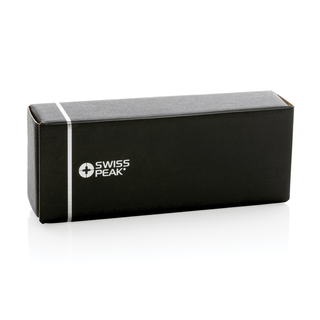 Luxury polarised sunglasses made with RCS certified recycled PC frame and aluminum temples. Total recycled content: 37% based on total item weight. RCS certification ensures a completely certified supply chain of the recycled materials. Including GRS certified recycled RPET sleeve to store the glasses in.The lenses are polarised which eliminates reflecting sunlight, making it ideal for driving a car or during other sunny summer or winter outdoor activities. Conform EN ISO 12312-1, UV 400 and CAT 3. Packed in a FSC® gift packaging.