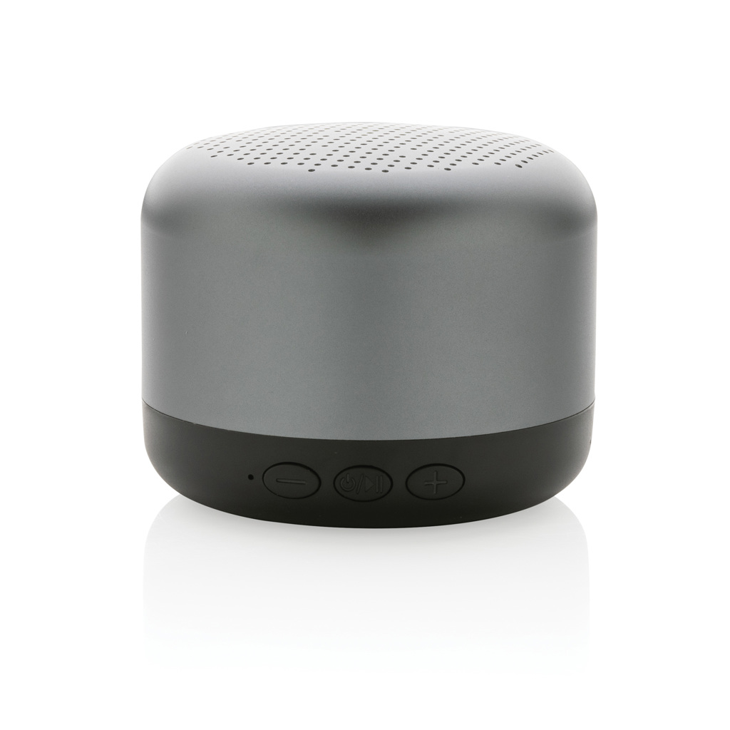 5W wireless speaker made with RCS (Recycled Claim Standard) certified recycled aluminium and ABS. Total recycled content: 35% based on total item weight. RCS certification ensures a completely certified supply chain of the recycled materials. Aluminium does not lose its characteristics in the recycling process and can be recycled endlessly. Including recycled type C charging cable made from RCS certified recycled aluminium, TPE and PET. Packed in FSC® mix packaging. The 600 mah battery allows a playtime up to 4 hours and can be fully re-charged in 2 hours. With BT 5.0 for smooth connection up to 10 metres.