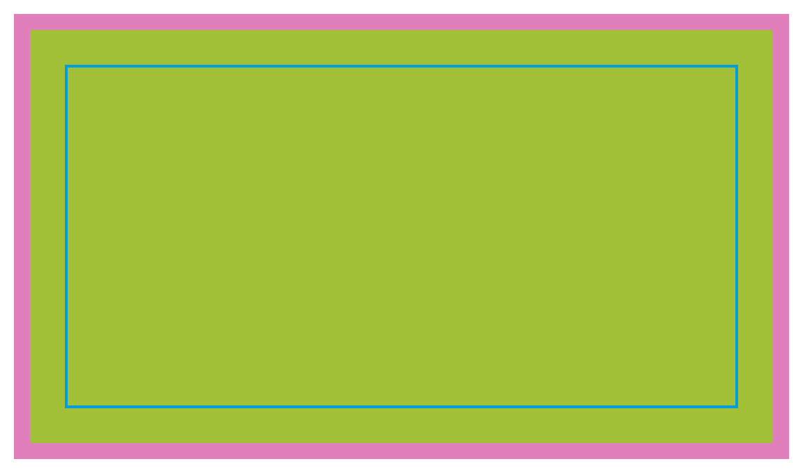 RUŽIČASTA BOJA na skici predstavlja napust (bleed) od 2 mm, koji je potreban za rezanje. To je prostor na koji je potrebno "razvuči" elemente, boju podloge ili slike.