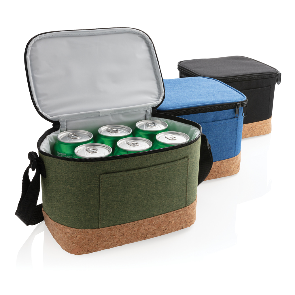 Keep your food and drinks cool until you are ready to use them in this beautiful two tone cooler bag with cork detail. This cooler bag can fit up to 6 cans. Including shoulder strap for versatile carrying options.