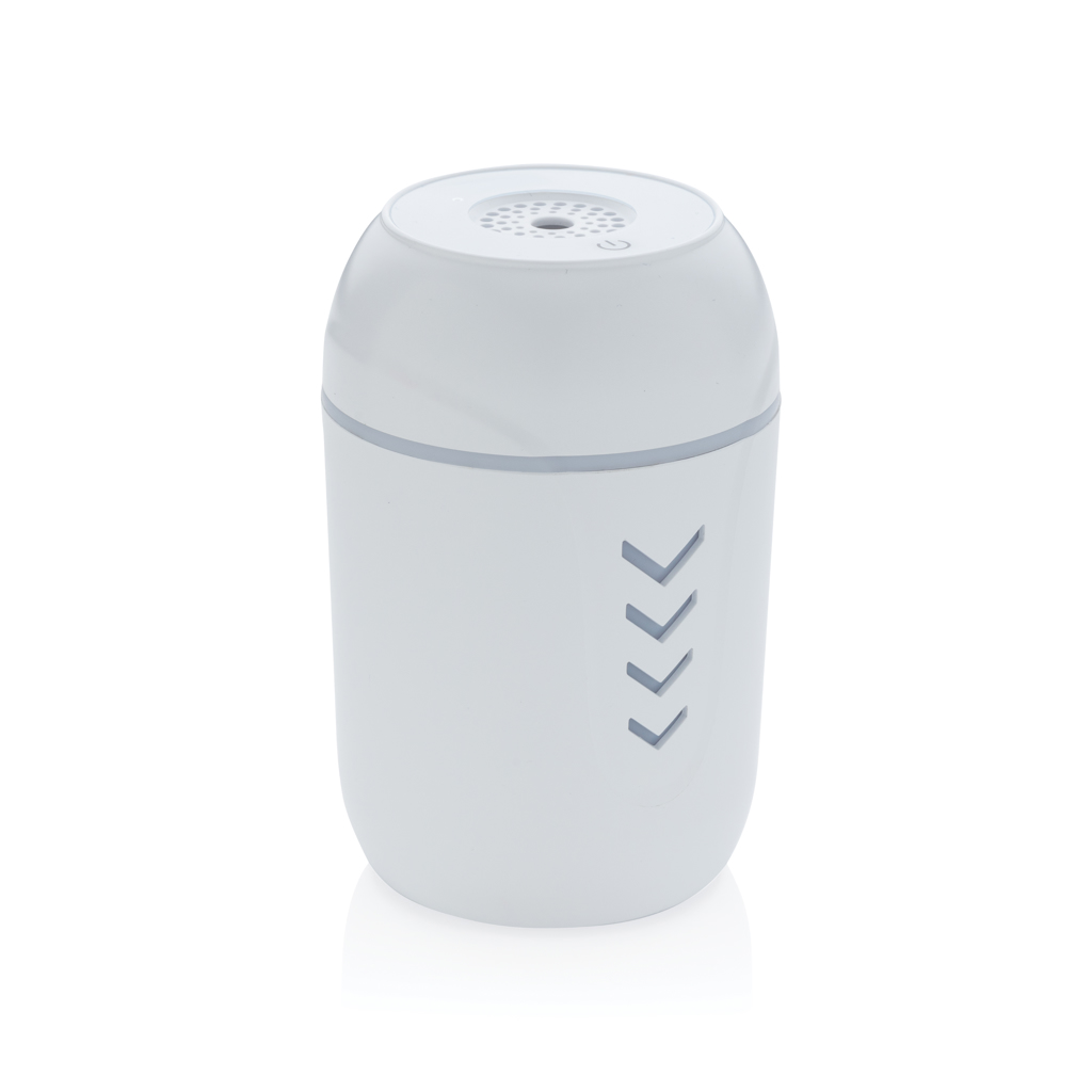 Humidifier made from durable ABS with integrated internal UV-C light that will look good on any table top. The humidifier will produce a mist to keep any living space healthy with optimal air quality. In winter it will make sure there will be less dry air and in summer it will have a cooling function. The nozzle produces very little sound so it’s even suitable to use at night. The integrated UV light will kill up to 99,9% of potential harmful bacteria in the water before being sprayed. Including 2 extra cotton sticks to replace the original one. One cotton stick will last up to 8 months of permanent use. Content: 200 ml that needs to be refilled after 4 hours of usage. UV-C wavelength 270nm-280nm. UV-C light will only be activated when item is closed. Including 120 cm PVC free TPE micro charging cable