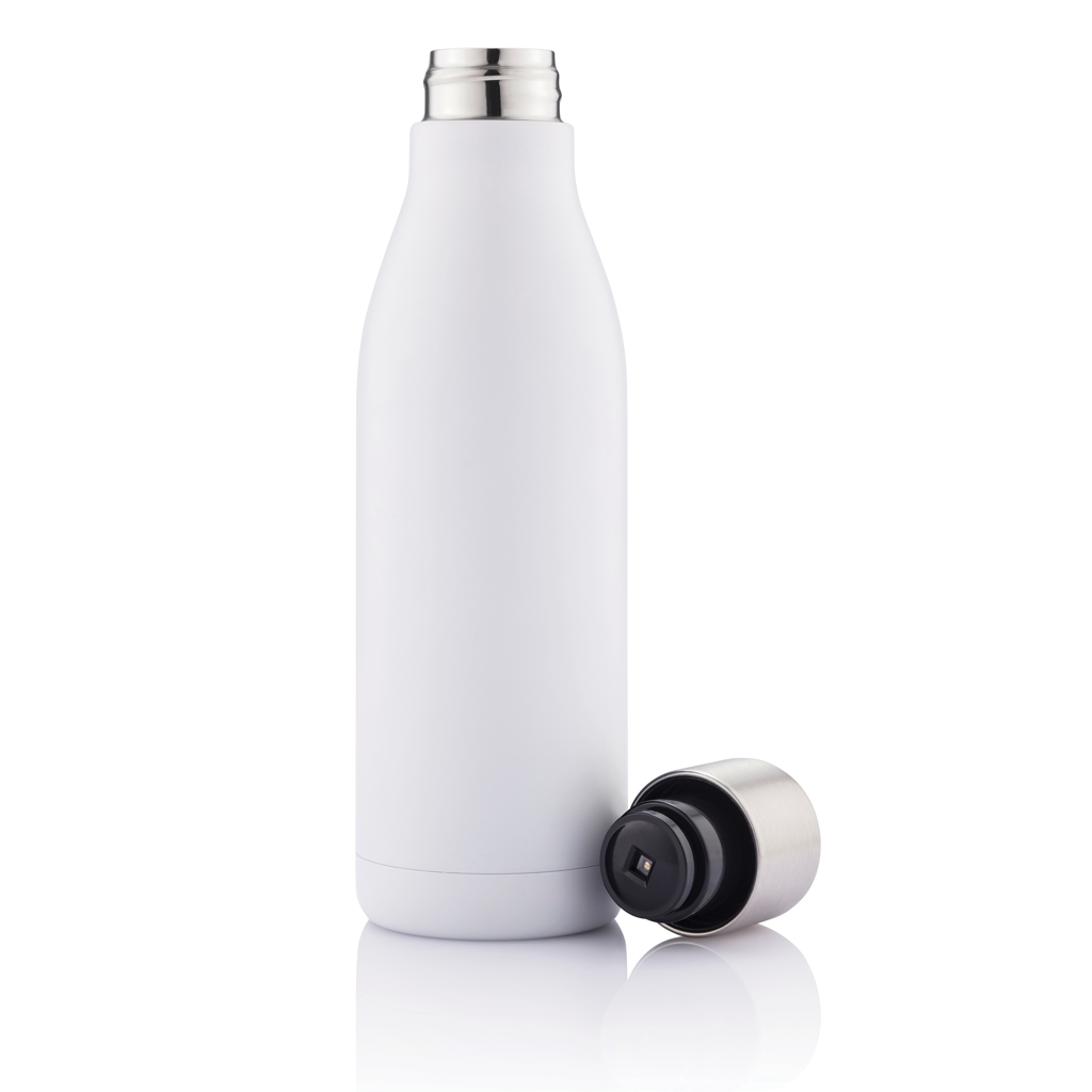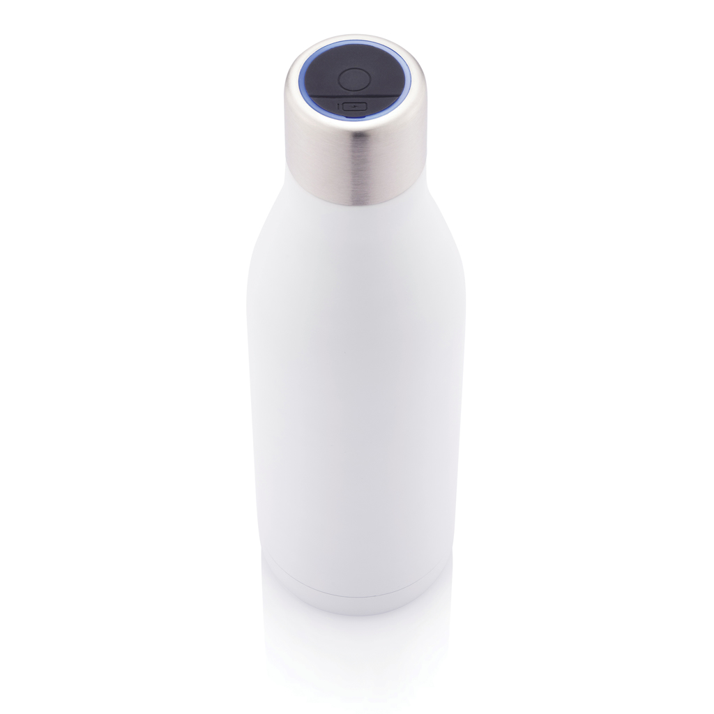 This UV-C steriliser vacuum stainless steel bottle uses intelligent UV-C LED technology to clean the inner surfaces of the bottle by eliminating odour-causing bacteria and viruses in about 5 minutes. Beautifully designed. Keep your water cold for up to 15 hours and hot for up to 5 hours with double wall insulated stainless steel construction. Comes with USB rechargeable 180 mAh Li-polymer battery, which enables you to sterilise your bottle up to 14 times on a full charge. Capacity 500ml. BPA free.