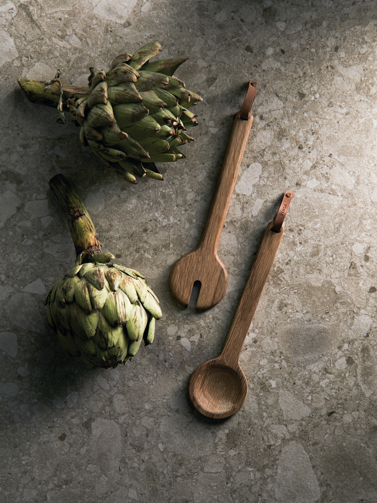 Exclusive oak serving utensils with a fine PU detail. The beautiful wood brings a lively and warm touch to the simple and stylish design. Perfect for both everyday and parties.