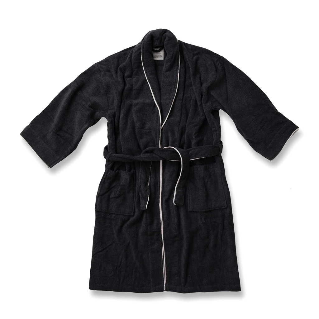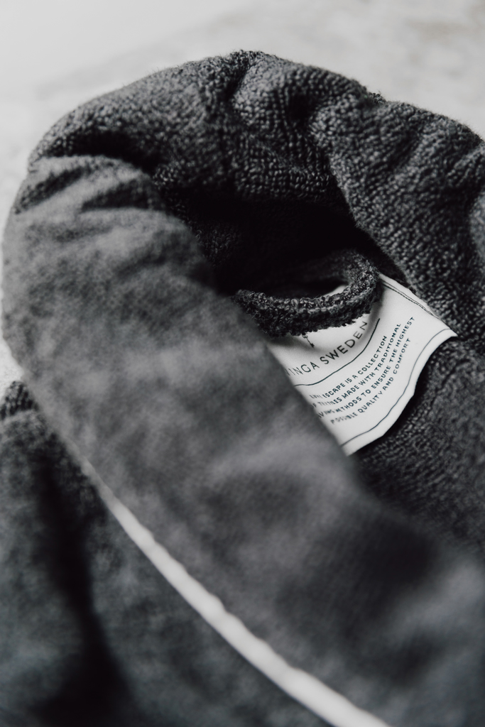 Luxurious robe in 100% cotton. The robe is a classic model with an extra wide collar and belt at the waist. It also has several nice details, such as enclosed seams and contrasting piping on the collar. Made of a long cotton fibre with untwisted threads. The result is an incredibly soft robe that you’ll never want to take off.
