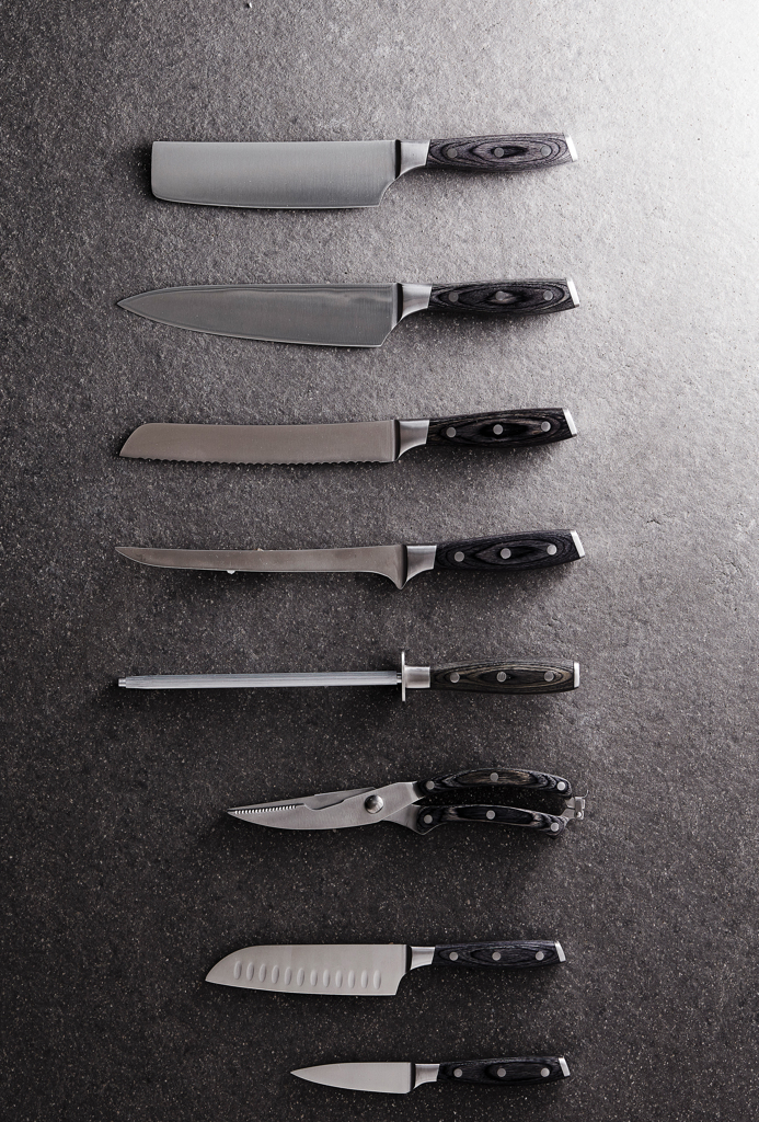 Bread knife made of X50CrMoV15 German steel with a Pakkawood handle. The easy-grip handle and superb balance in the blade makes the knife comfortable and easy to work with. Size: 20 cm blade.